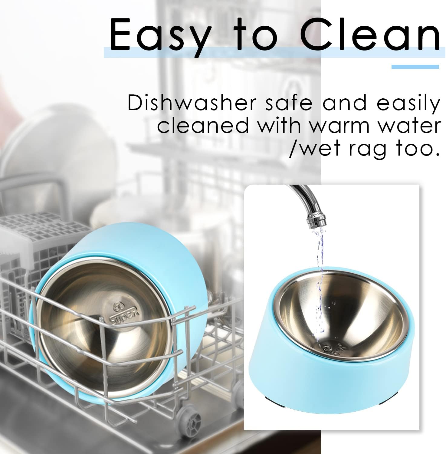 Easy to Clean Cat Bowls – Both Melamine Stand and Stainless Steel Bowl are Dishwasher Safe, super easy to clean and wipe