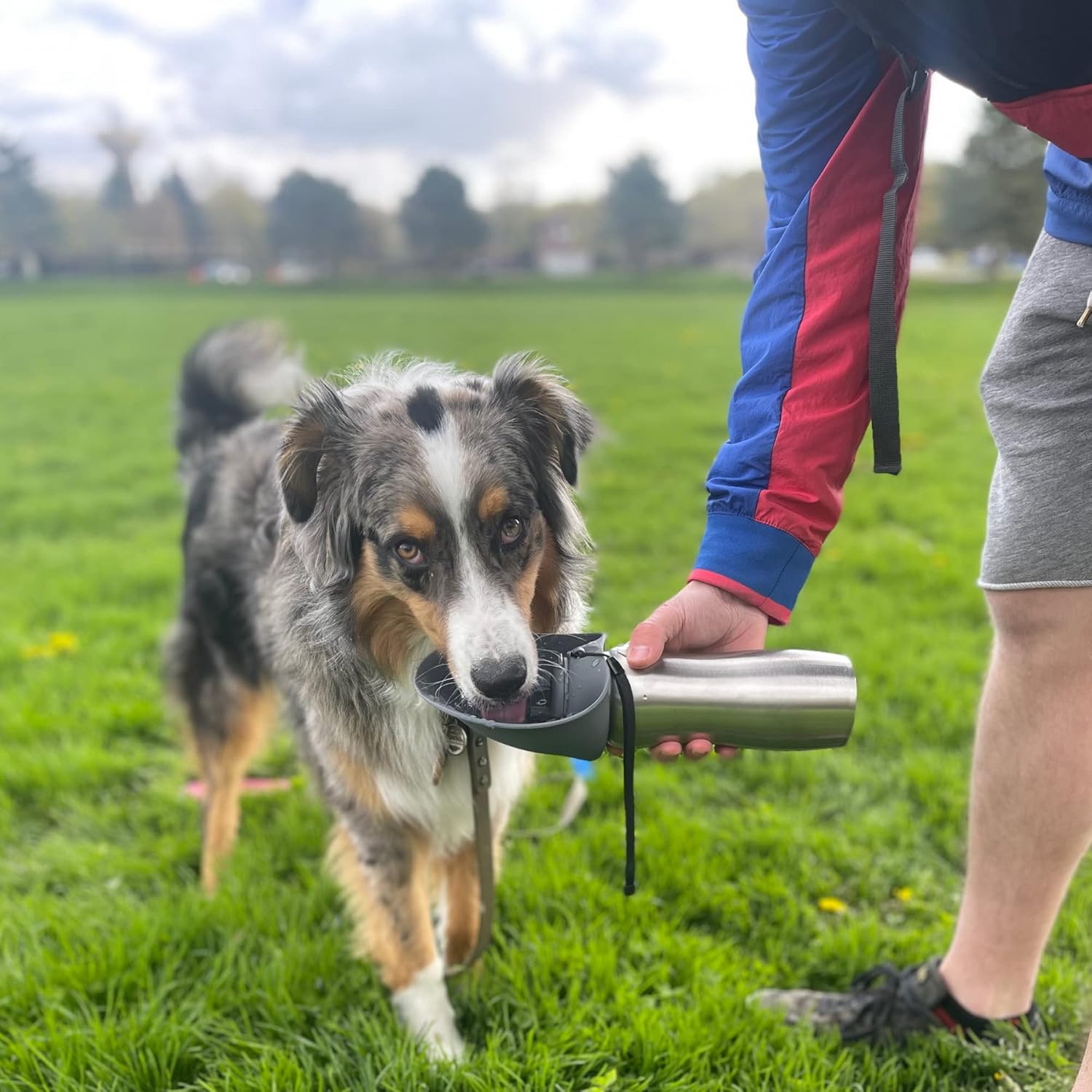PORTABLE PET ACCESSORY –The extra wide silicone drinking bowl flips up for easy serving. Easily pour water out with the water release on/off button. The water will self-level in the bowl and continue to fill as your dog slurps away. Most of the unused water drains back into the stainless-steel bottle after use to reduce waste. Simply tip it back before folding the bowl back over into its portable position.