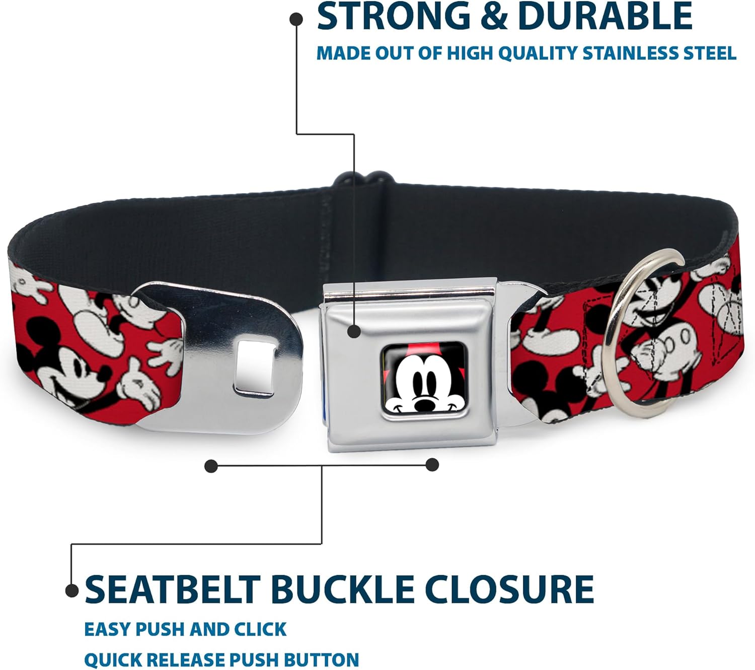Buckle-Down Seatbelt Buckle Dog Collar – Mickey Mouse Poses Scattered Red/Black/White – 1″ Wide – Fits 15-26″ Neck – Large