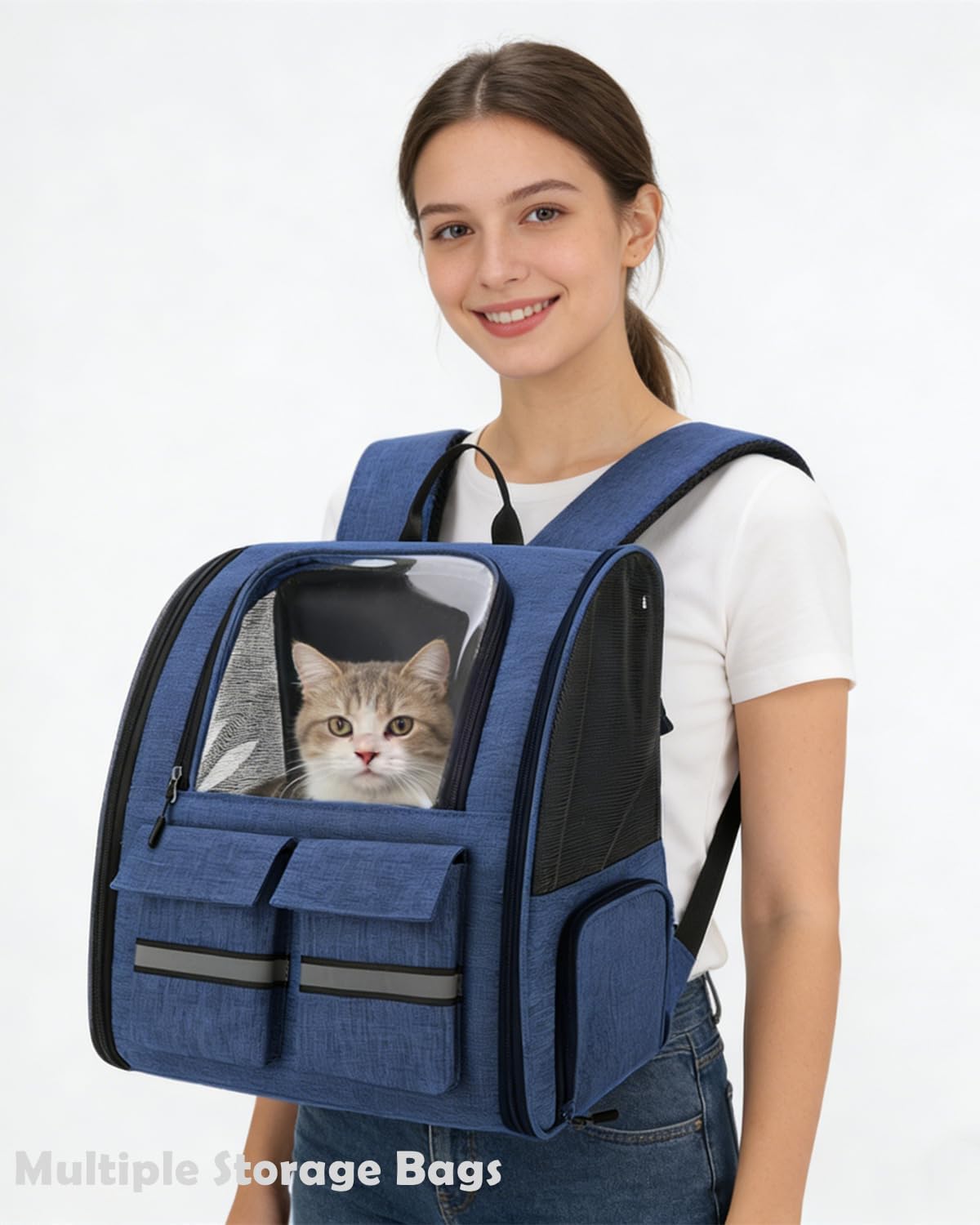 HIGH QUALITY MATERIAL: The cat travel backpack is made of breathable and durable oxford fabric, which is not only easy to clean and maintain, but also prevents your cat from scratching and makes the backpack cat carrier more durable
