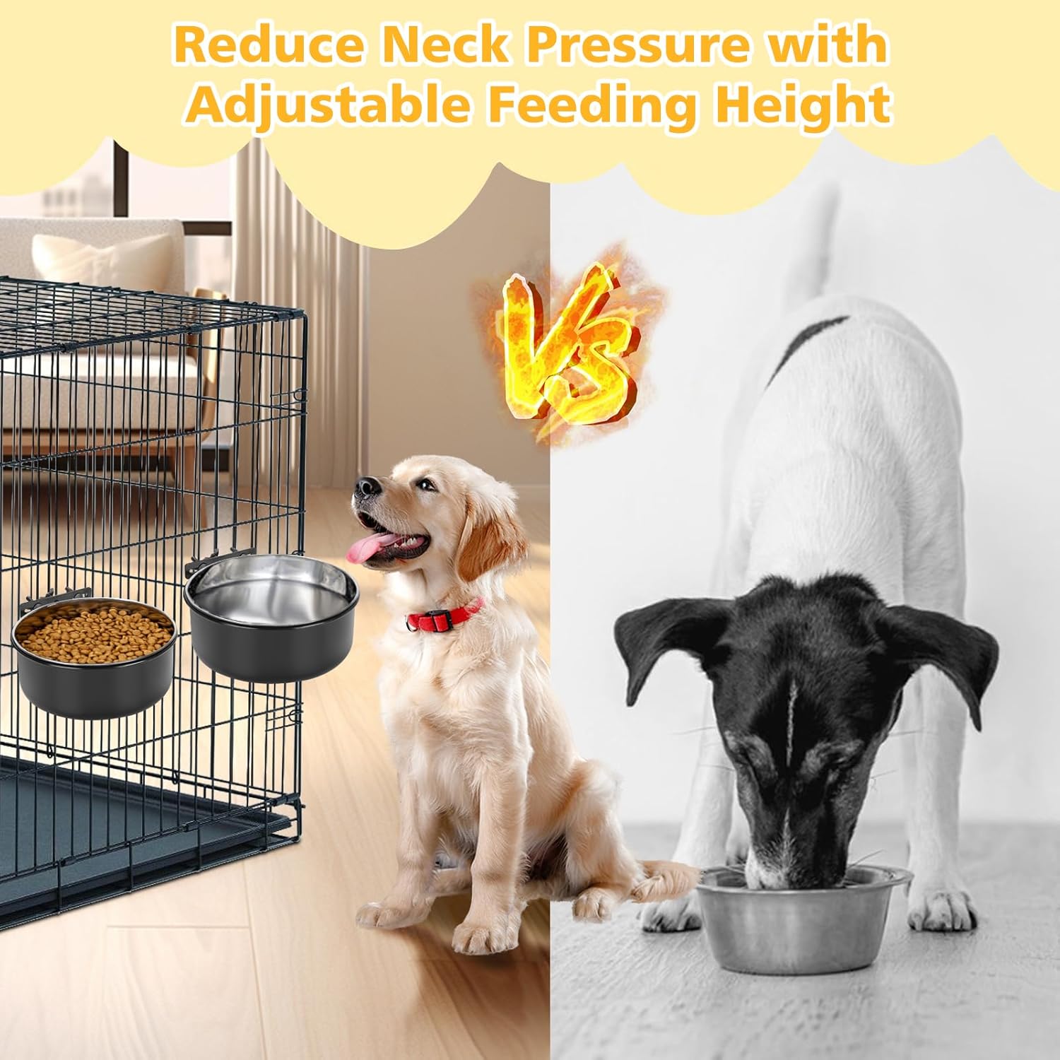 【Rust-Resistant Stainless Steel】Made with food-grade stainless steel, the deepened and reinforced bowl minimizes mess by preventing tipping, helping keep your dog’s space clean. Additionally, it offers strong resistance to rust and daily wear.