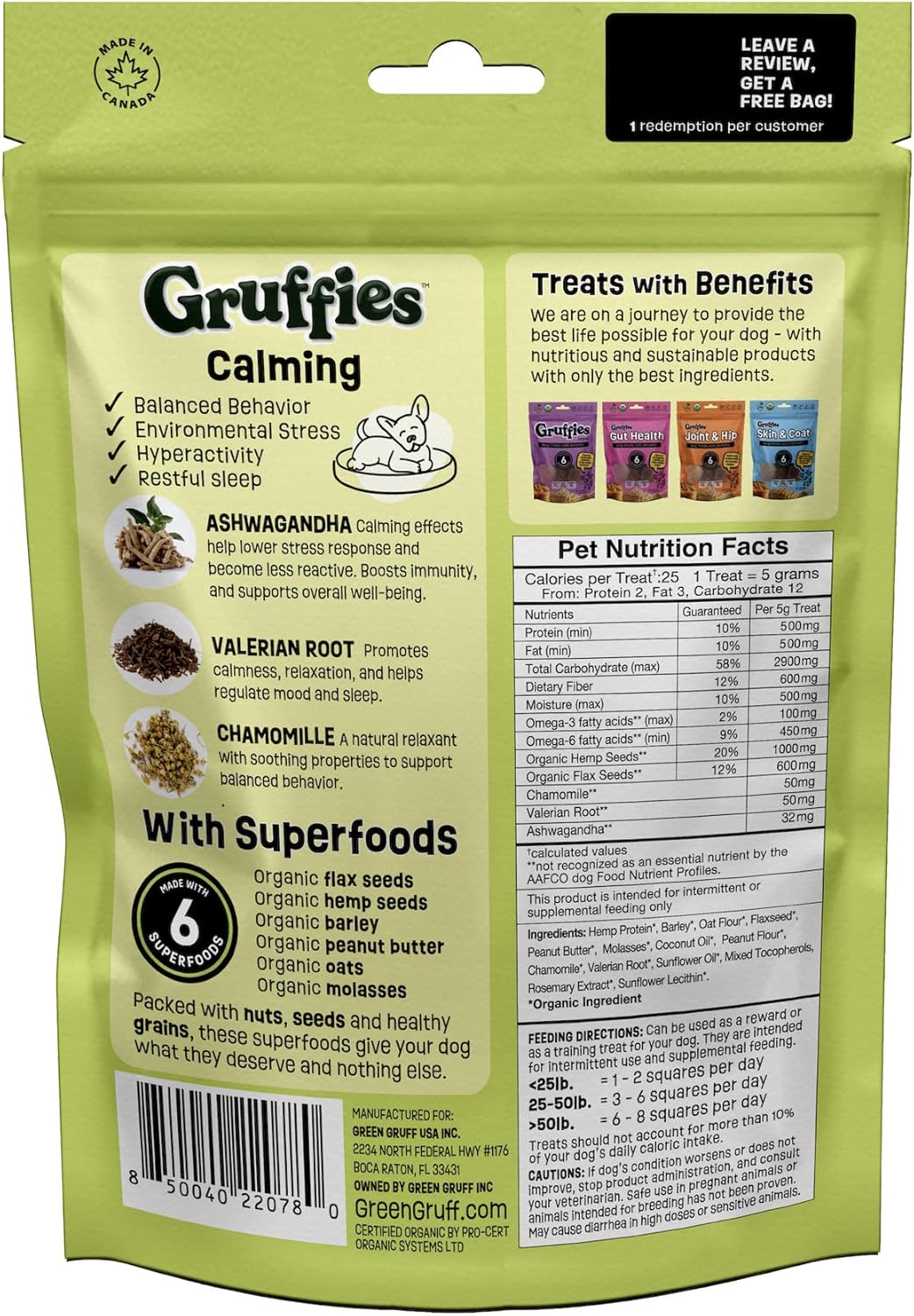 🩺 USDA Organic, Non-GMO & Clean Ingredients – Made with premium ingredients sourced from North America. Gruffies Calming Organic Dog Treats are USDA Organic, Non-GMO, and completely free from soy, wheat, corn, glycerin, or artificial additives.