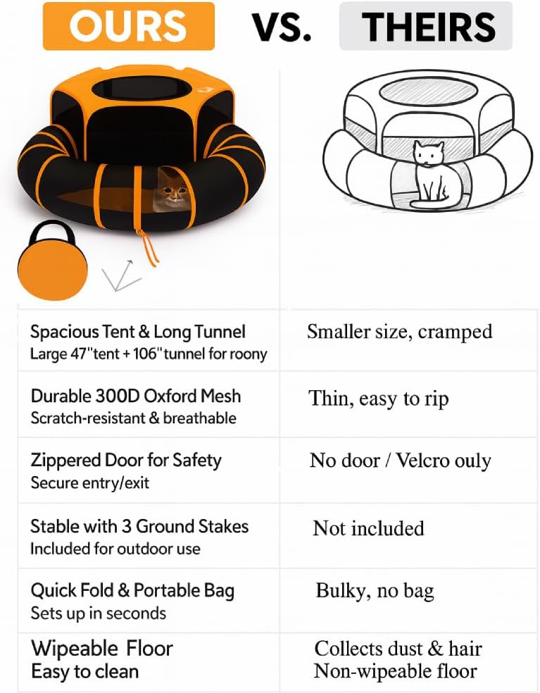 Want more room to roam? Easily connect multiple tents or tunnels to create a larger play area. Ideal for multi-cat households or energetic pets who love to explore.