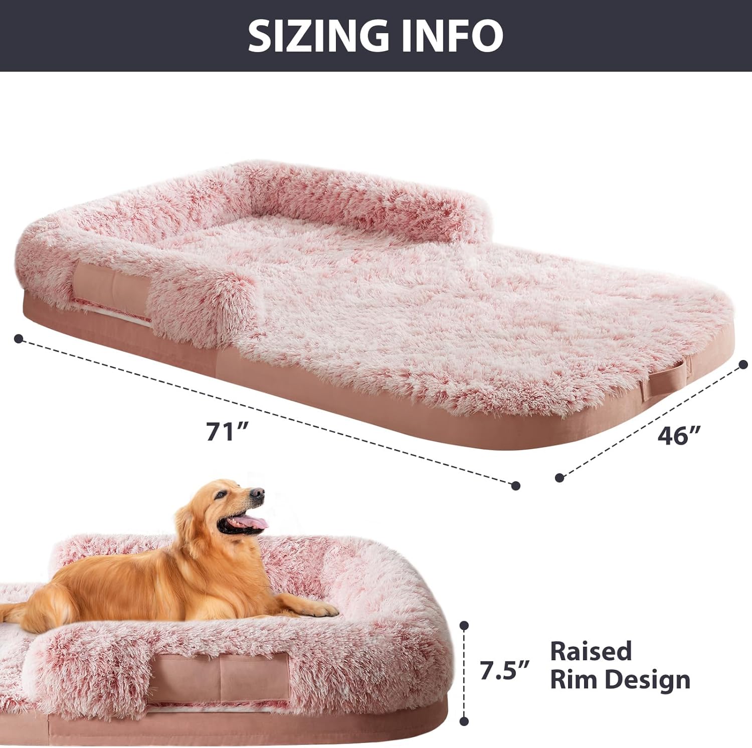 【Non-foldable orthopedic Foam】The bed for human-sized children uses orthopedic foam that provides strong support for the spine, ensuring that you and your cherished animal have a more pleasant experience. This human puppy bed has a reinforced rail on the side that will provide excellent support for the shores and fish, allowing you and your cherished animal to spend happy moments in a more comfortable environment.