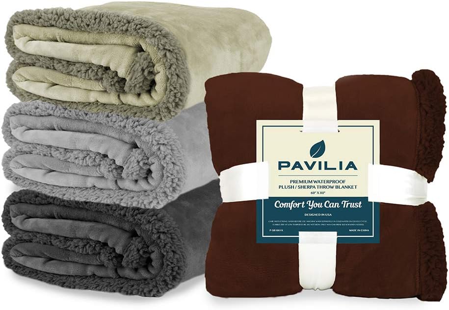 Waterproof Premium Flannel Fleece Sherpa Throw Blanket by Pavilia