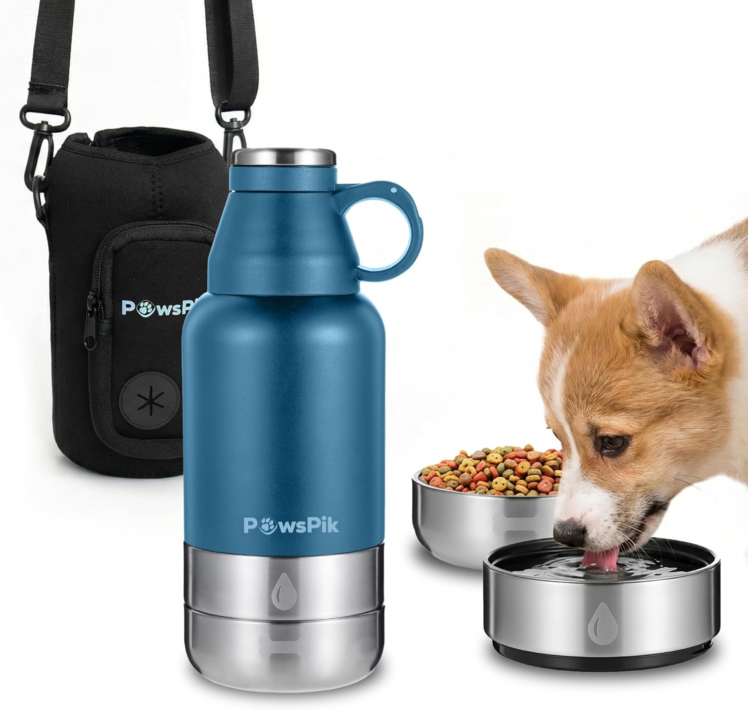 [3-in-1 Travel Set for Pets on the Go – Stay Hydrated & Fed Anywhere]: Includes a vacuum-insulated stainless-steel bottle with two detachable dog bowls for food and water. Designed as a portable dog water bottle that keeps your pet refreshed during daily walks and short trips.