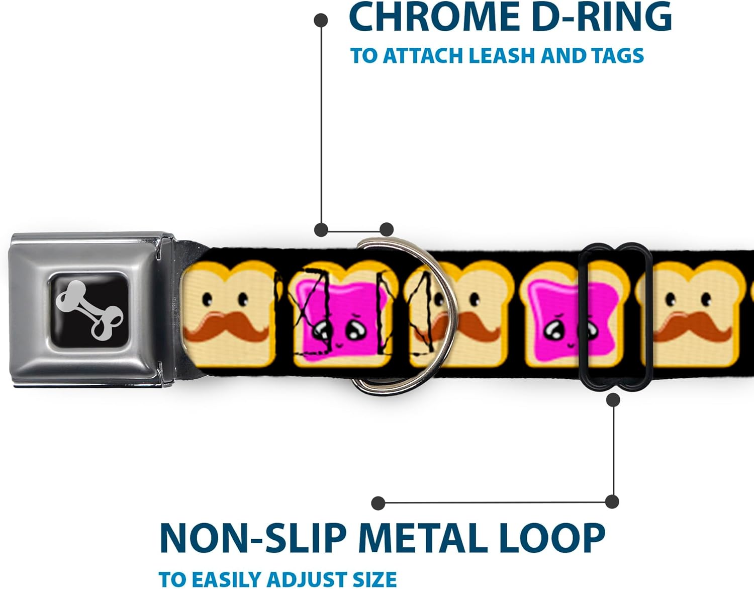Buckle-Down Seatbelt Buckle Dog Collar – Peanut Butter w/Mustache & Jelly – 1.5″ Wide – Fits 16-23″ Neck – Medium