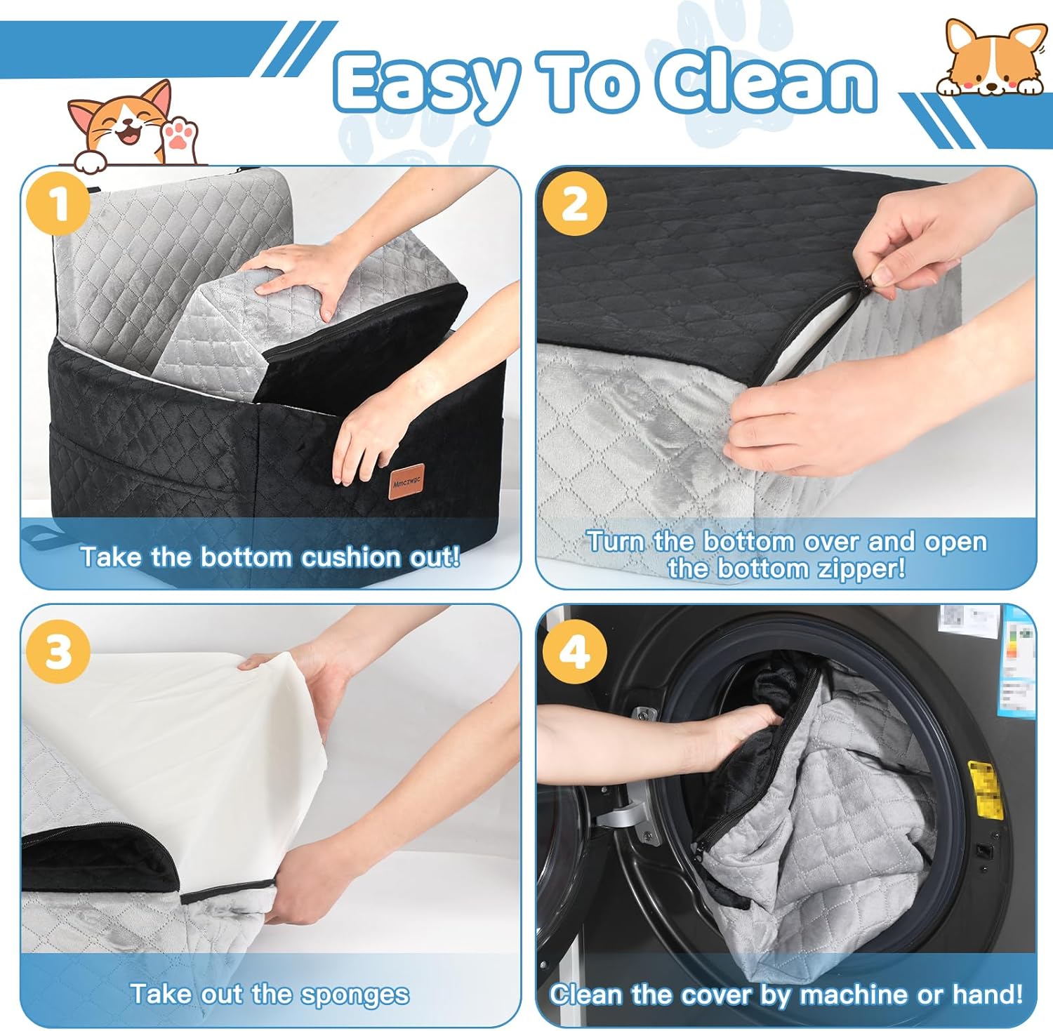 Easy to Clean: The small dog car seat cover is removable—simply unzip the seat, remove the sponge, and toss the cover in the washing machine. Tip: The inner sponge is not washable.