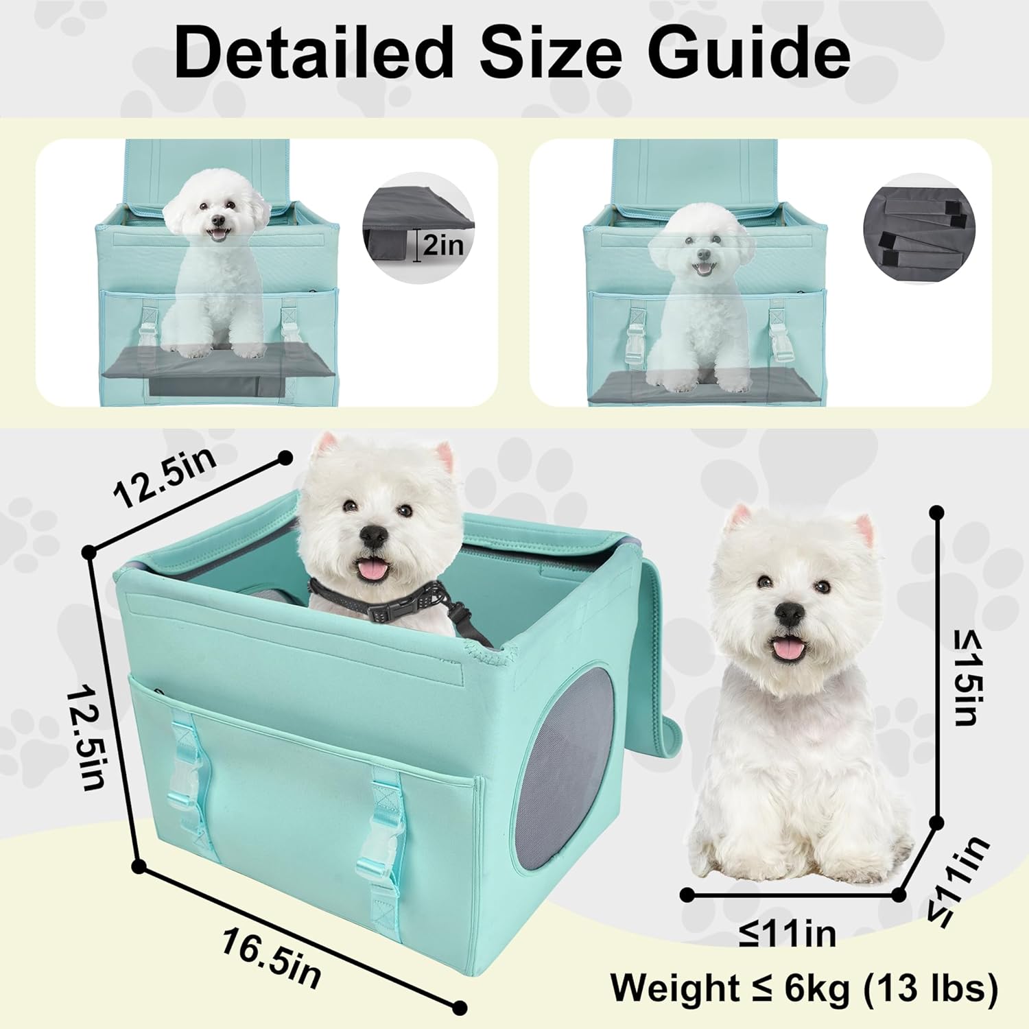 【Enhanced Comfort】​​ The seat is made of soft, comfortable fabric that is detachable and machine washable. The mesh sides ensure airflow, keeping your pet comfortable on the go. The included height pads help them see outside, keeping them calm and relaxed. Plus, we’ve included a matching leash and collar, so you don’t need to purchase them separately—everything you need for your pet’s safety and comfort is all in one!