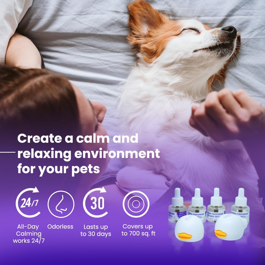 The dog calming diffuser in this kit helps soothe anxious dogs, creating a serene atmosphere for both cats and dogs alike.
