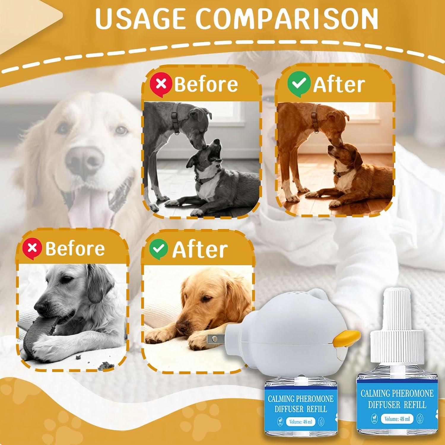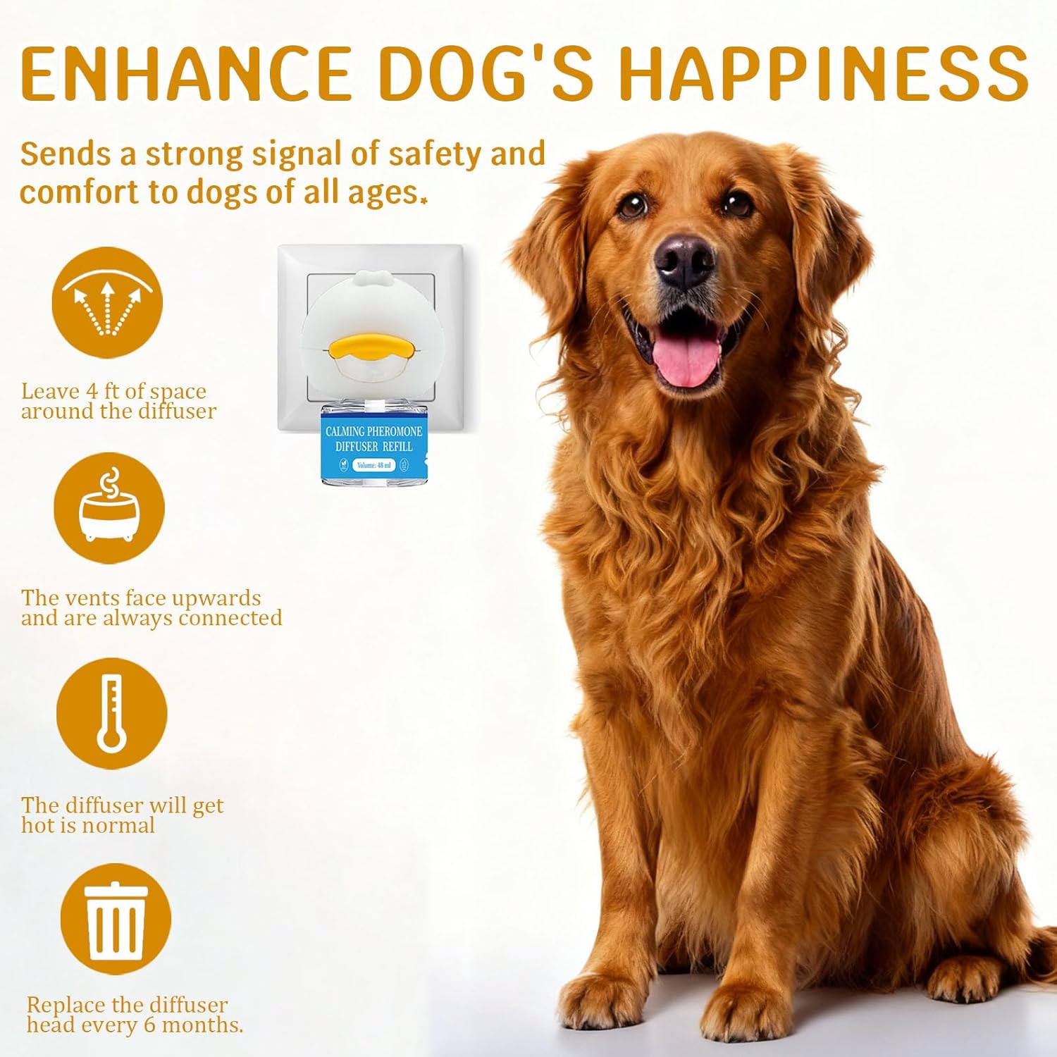 Advanced Calming Formula: Our 3-in-1 dog calming diffuser uses an advanced, appeasing pheromone formula specifically designed to comfort your dog. This pet diffuser to calm dogs helps reduce common stress and anxiety, creating a more serene environment for your furry friend without any artificial scents or harsh chemicals.