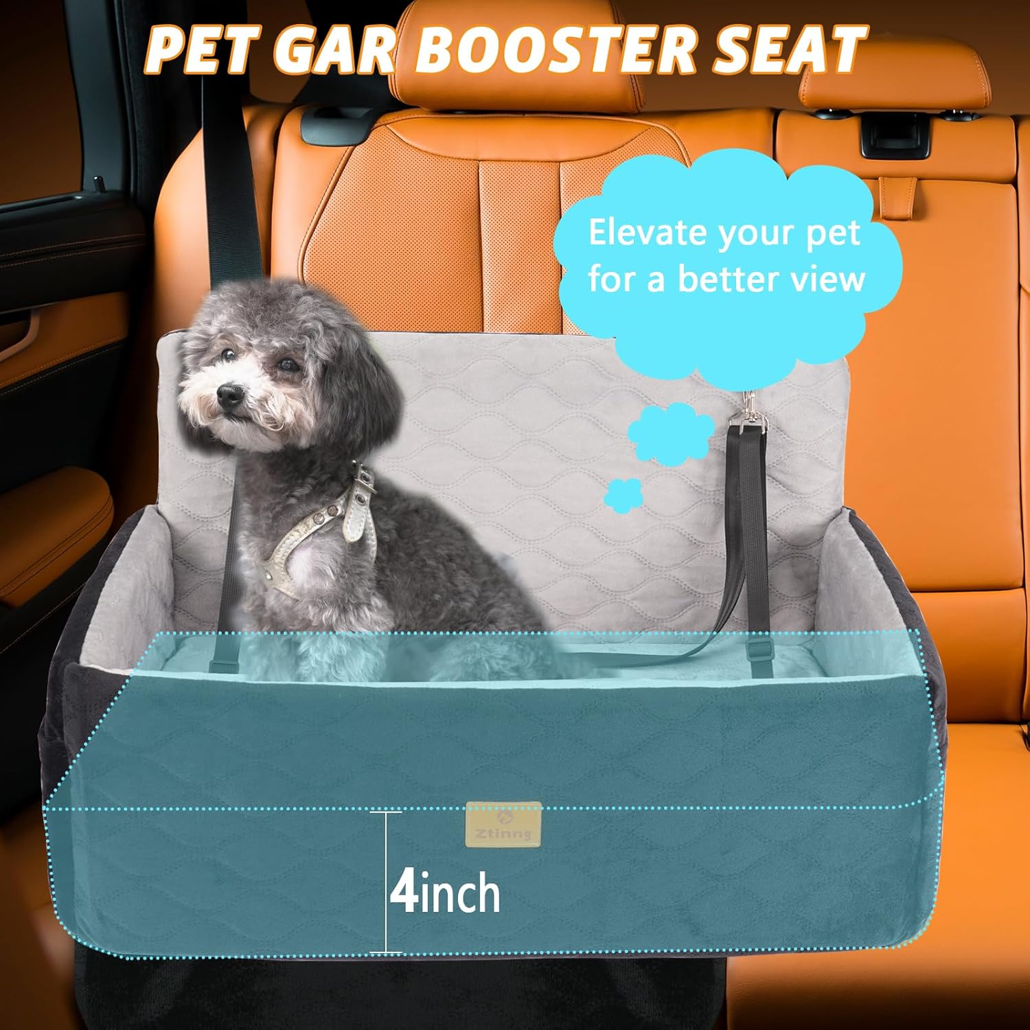 【Elevated Comfort for Your Furry Friend】: The dog booster car seat features an ultra-soft surface material and is cushioned with soft memory foam,The 4 inch high Memory Foam pad at the bottom enables pets to enjoy the outside scenery comfortably.