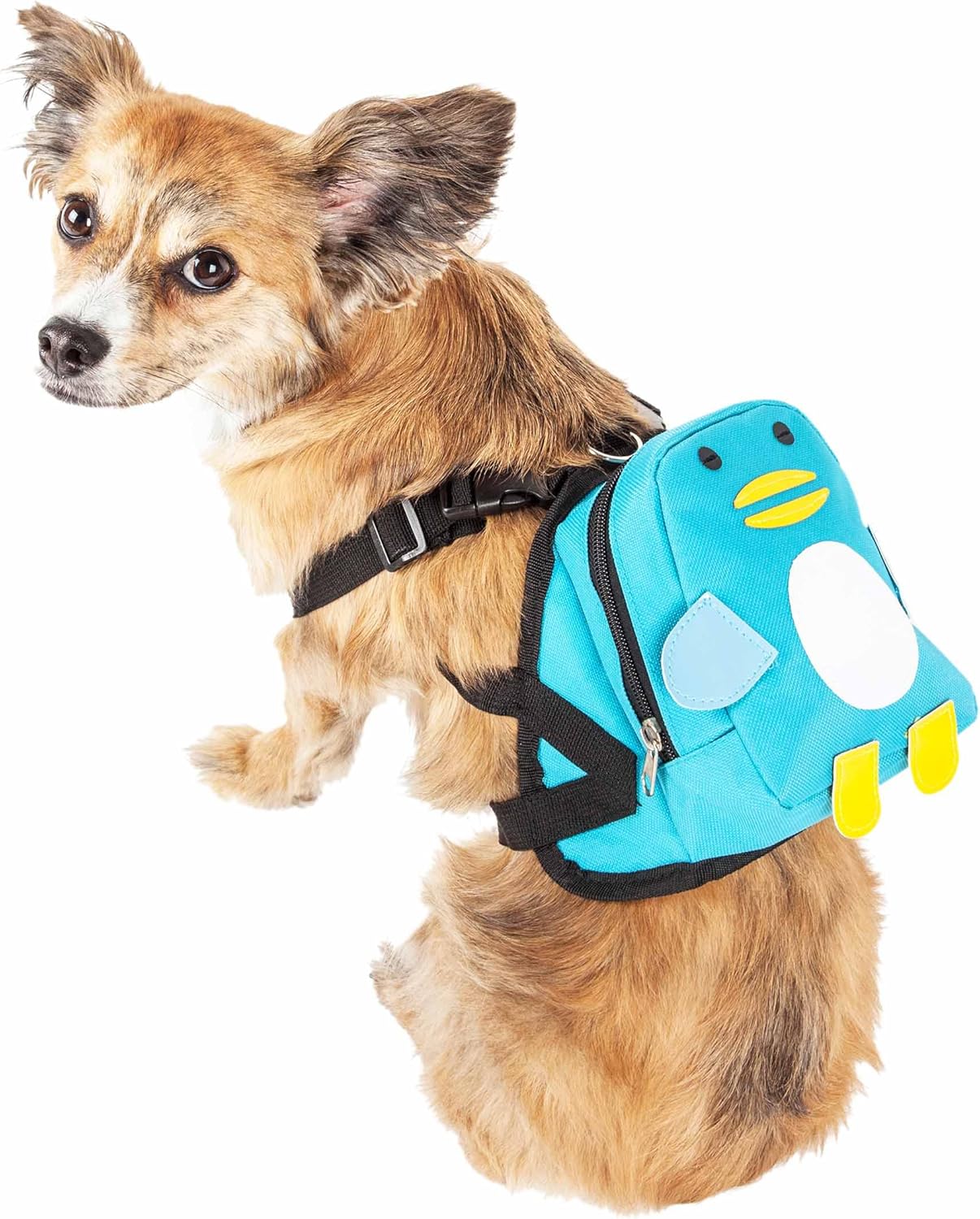 The Pet Life ‘Waggler Hobbler’ Large-Pocketed compartmental animated Dog Harness Backpack features an expressive Penguin-faced animation that’s both fun and functional. The Waggler Hobbler backpack features a large spacious zippered usable back pocket that is perfect for placing belongings. Exo-shell is composed of durable Nylon that is reversed with comfortable Micro-mesh for complete breathability and comfortability that gently hugs the body. The back of the harness features a harness ring and dual buckles connected to durable seat belt-like heavy duty adjustable nylon straps. Available in Multiple Sizes. SIZING MEASUREMENTS: (In Inches) SMALL: Length: 5.51″ Chest Girth: 14.9 – 17.3″ (Smaller sized breeds) MEDIUM: Length: 7.08″ Chest Girth: 18.1 – 22″ (Small to Medium sized breeds).