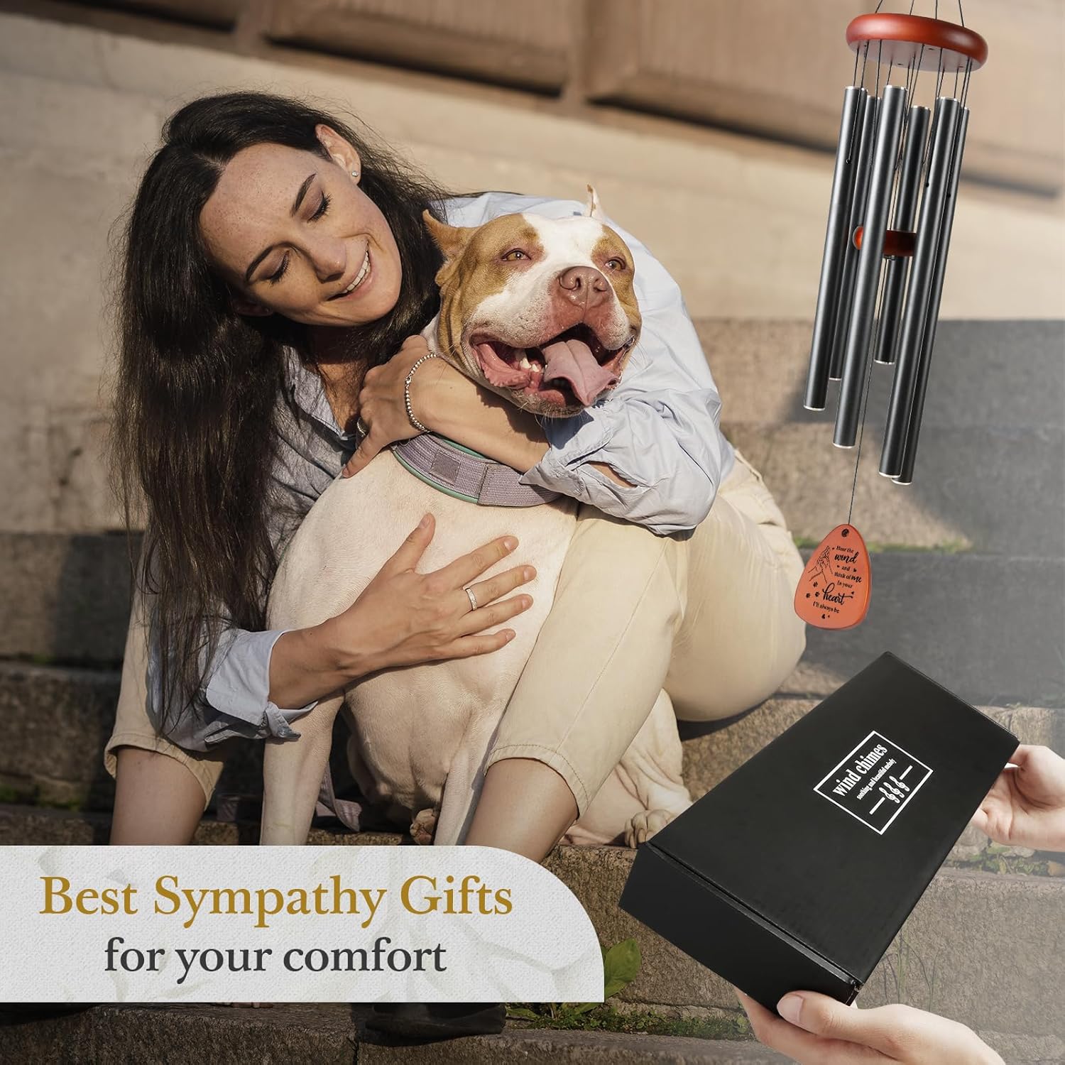 【Pet Memorial Gifts 】Each wind chime comes securely packaged in a gift box with pet-themed designs and the chime tubes wrapped in protective sponge. Along with the wind chime, we include a Condolence Card with a blank back for your personal message. This heartfelt gift is a thoughtful expression of sympathy and comfort for the loss of a dog.