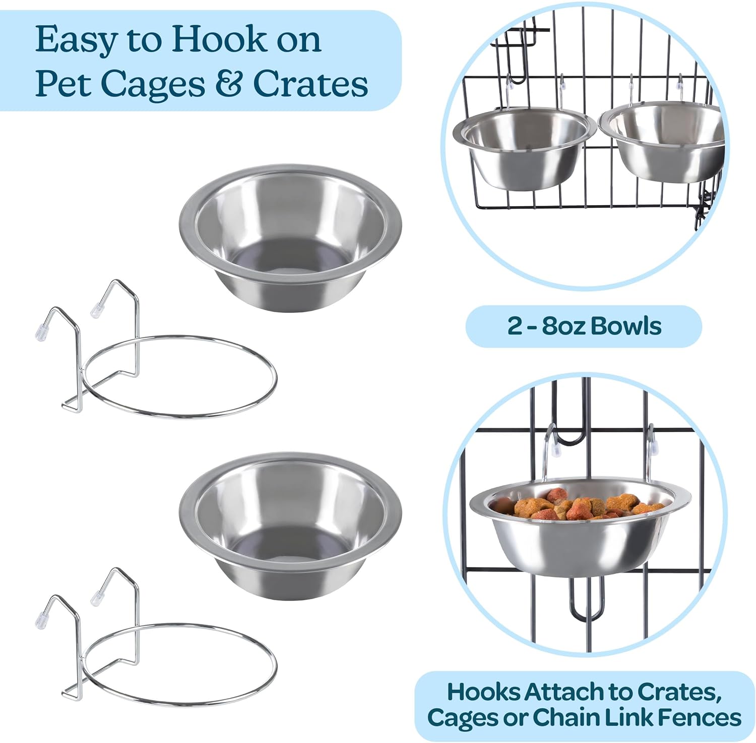 Petmaker Stainless Steel Dog Bowls – 8oz Hanging Set for Crates – Dishwasher Safe