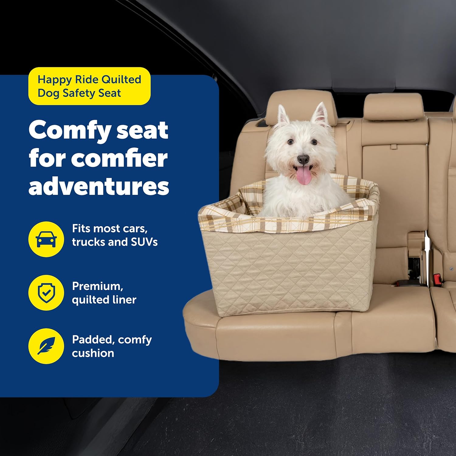 Comfort & Security: The PetSafe Happy Ride Quilted Dog Safety Seat offers a cozy comfortable dog car seat that enhances travel safety and keeps your pet relaxed during rides
