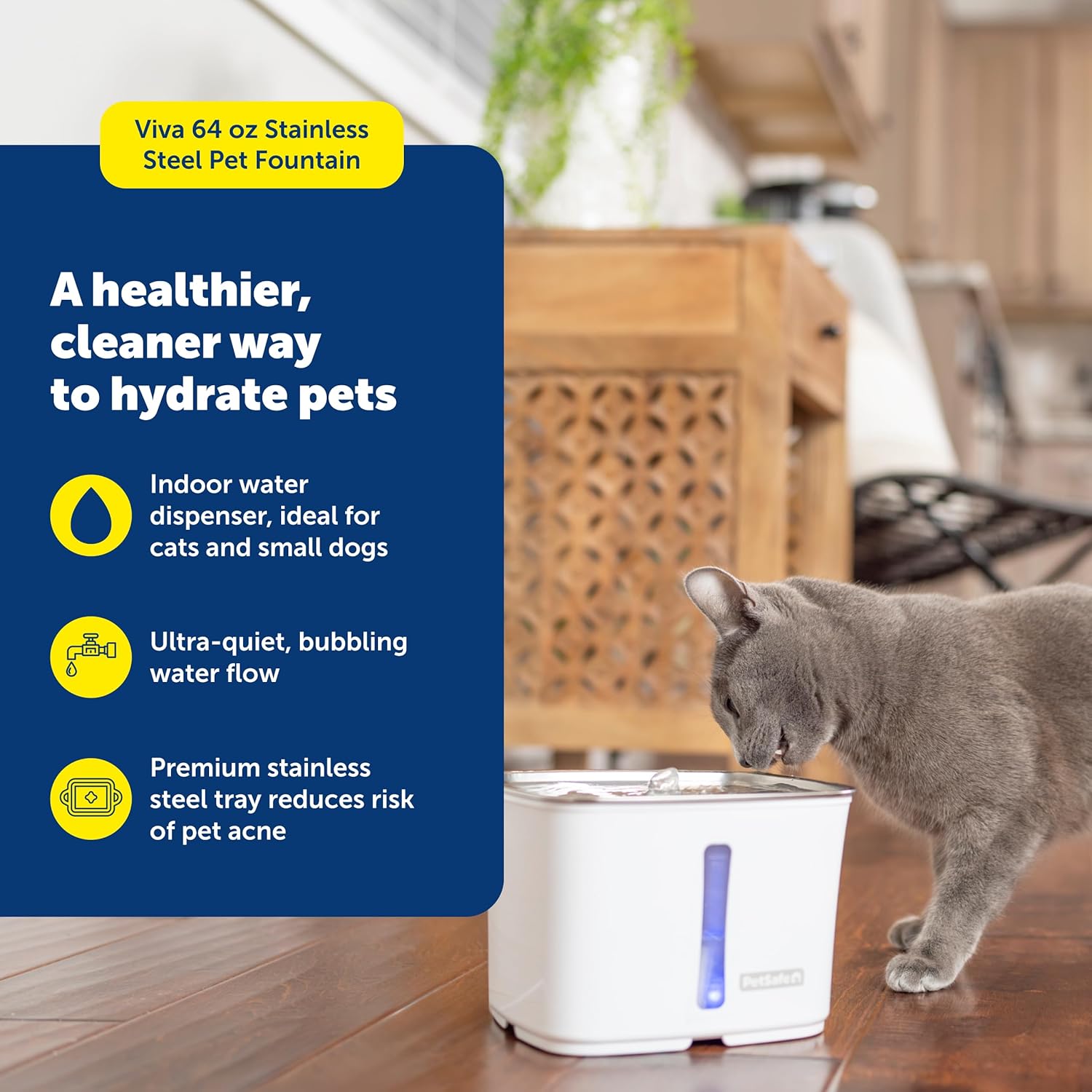 Encourage Healthy Hydration: The PetSafe Viva Pet Fountain keeps small- to medium-sized pets drinking more with a water fountain design and double filtration to support healthy hydration