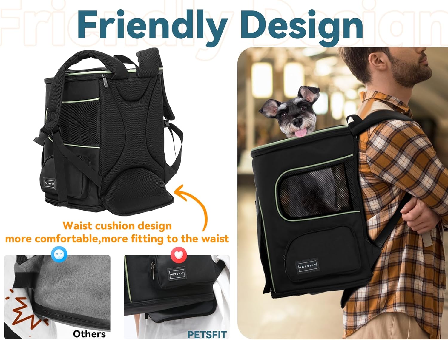 🌲 PETSFIT Dog Backpack Carrier with Upgraded Waist Protection Design, Cat Backpacks for Carrying Cats/Dogs/Puppies Up to 22 Pounds. Designed for Hiking Camping Traveling,Black — Outdoor Dog Gear Review & Current Price