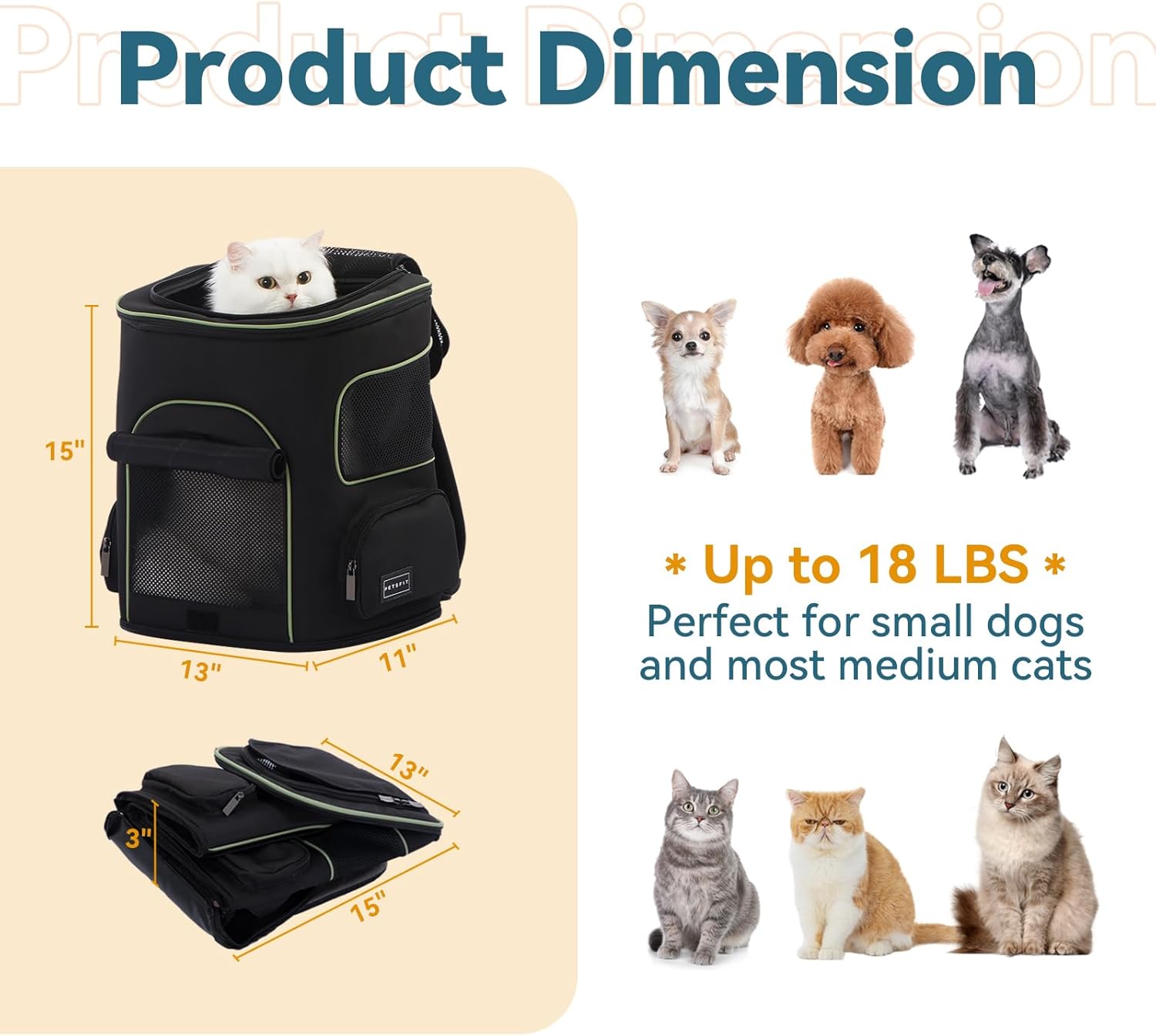 【Spacious Interior】The dog backpack measures 13″L × 11″ W × 15″H and folds easily to carry outside. Providing plenty of room for your pet to move around. Perfect for medium-sized cats and small dogs, up to 22lb / 10 kg, Please check the pet backpack size carefully before purchase