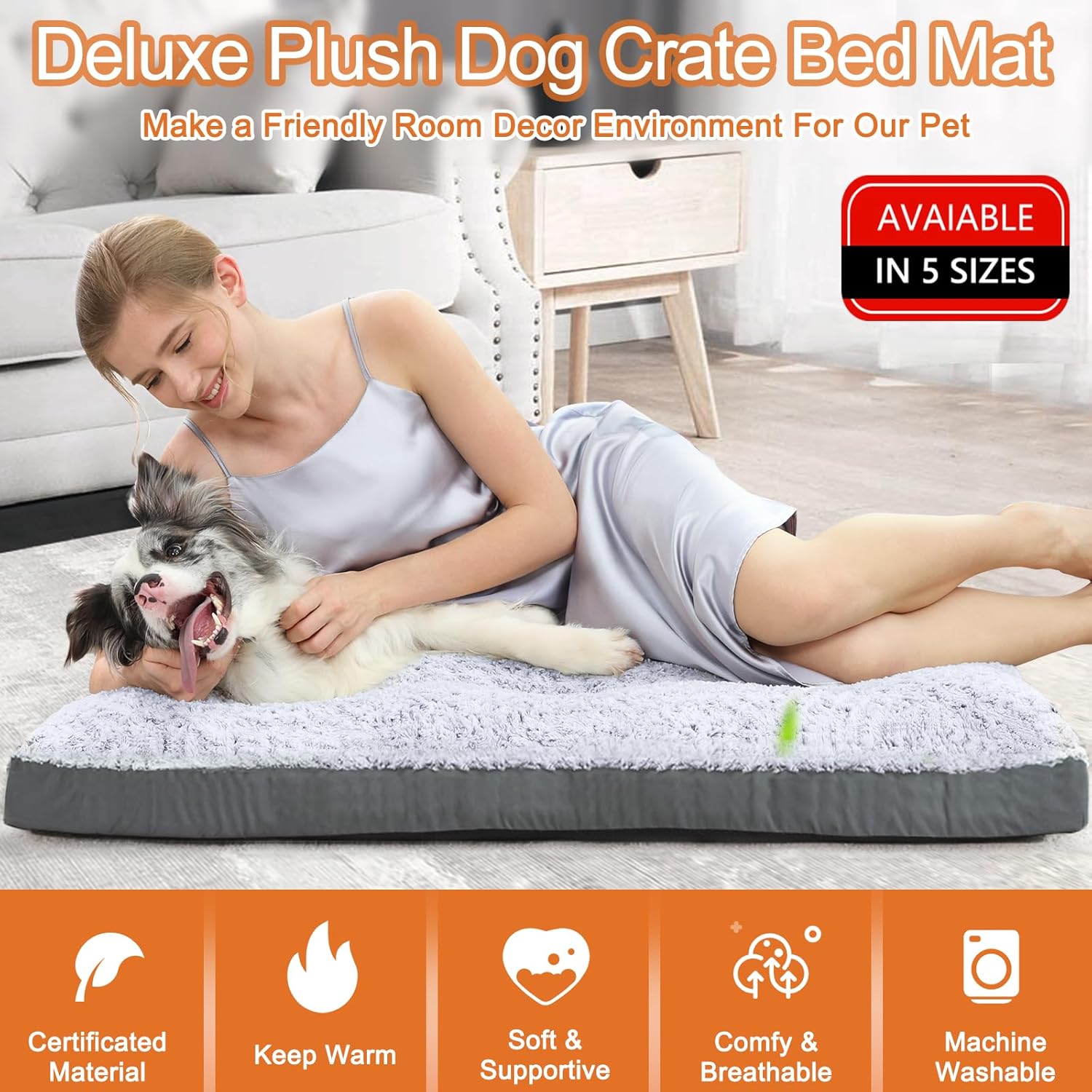 🌲 POCBLUE Deluxe Washable Dog Bed for Large Dogs Dog Crate Mat 35 Inch Comfy Fluffy Kennel Pad Anti-Slip for Dogs Up to 60 lbs, 35″ x 23″, Grey — Outdoor Dog Gear Review & Current Price