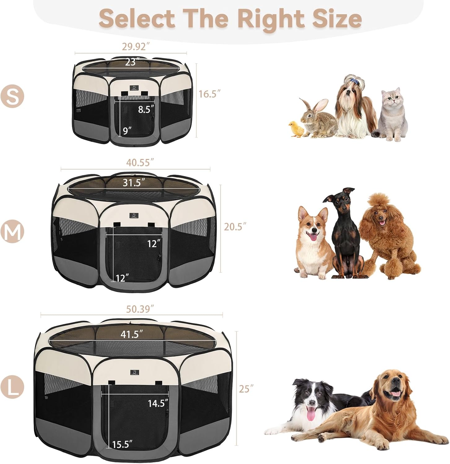 Q2: It’s extremely user-friendly! This portable dog pen uses a pop-up design that requires no tools—it sets up in seconds. When not in use, it folds flat, so it’s great for travel, camping, and small spaces like apartments or RVs.