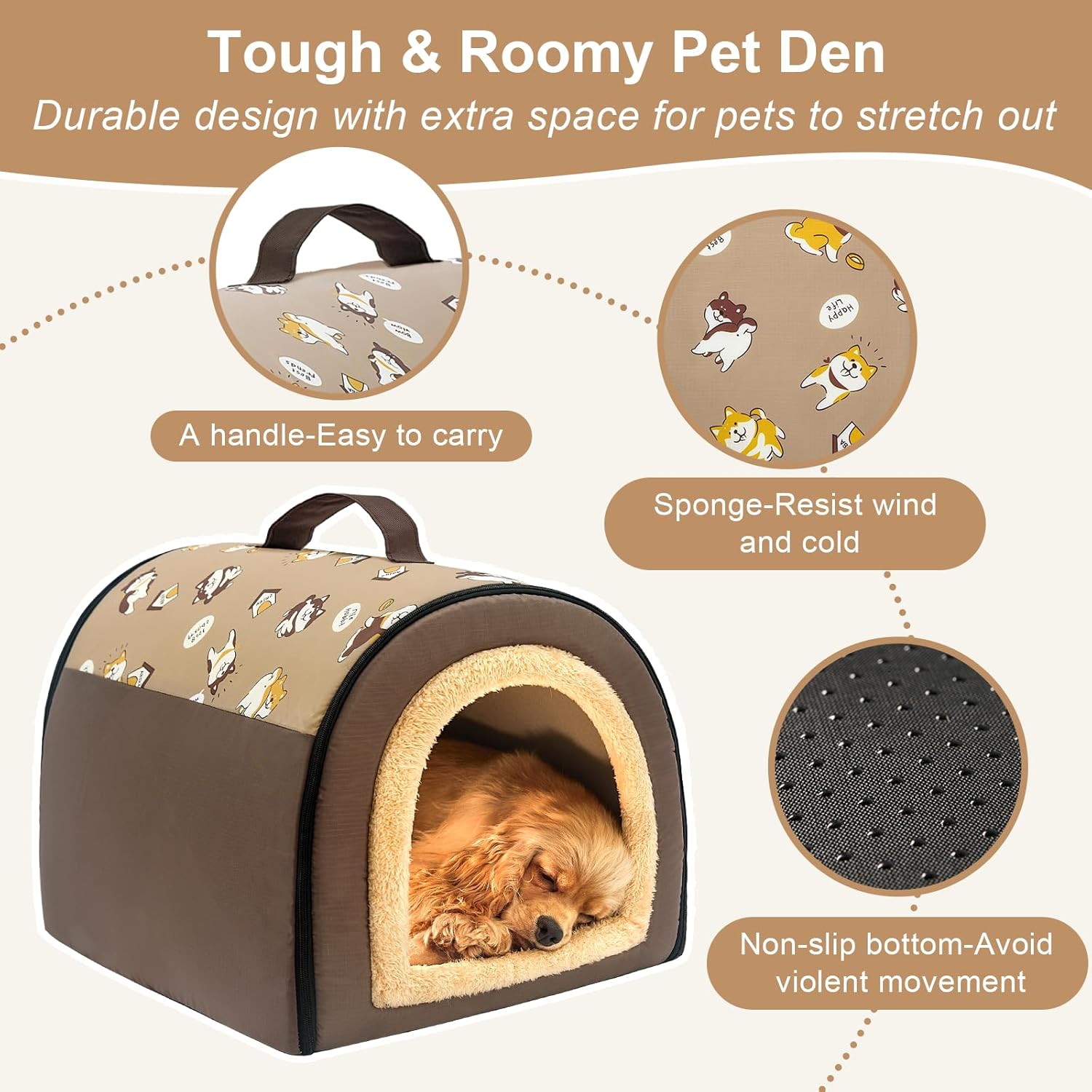 🌲 Jiupety Indoor Dog House, 2 in 1 Portable Foldable House Bed with Cover, Pet Tent & Cave Bed for Small Medium Dog, L(21″×17″×15″), Up to 16 Lb, Brown — Outdoor Dog Gear Review & Current Price