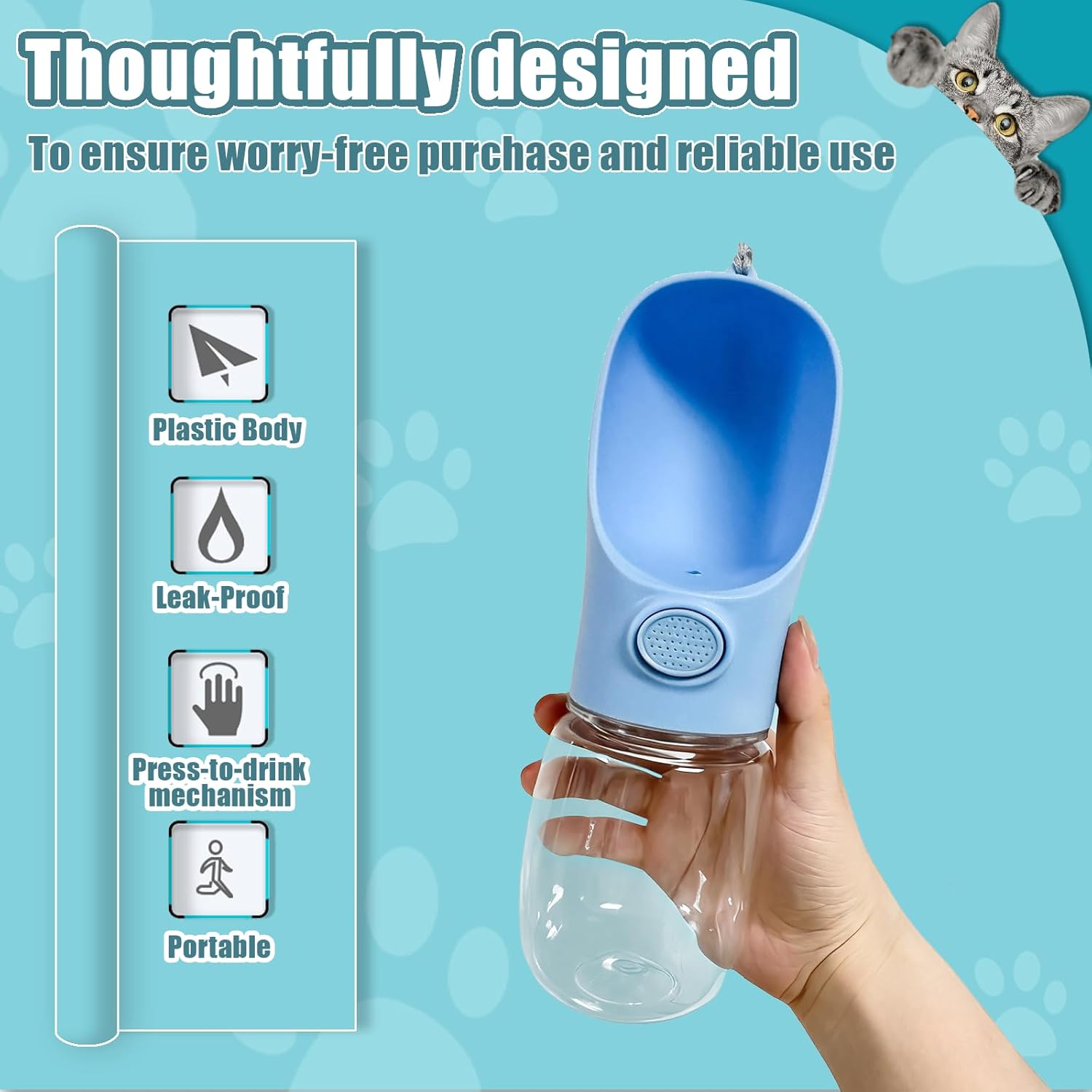 Only flows out when pressed, preventing accidental spills in bags or cars.The detachable sink is easy to clean and supports hand washing or dishwasher cleaning.Translucent bottle body allows easy monitoring of water levels, so you never run out of water for your pet.Durable PP plastic resists impact and scratches, suitable for rough outdoor use. Wide-mouth design makes refilling water quick and easy, even from faucets or water stations.