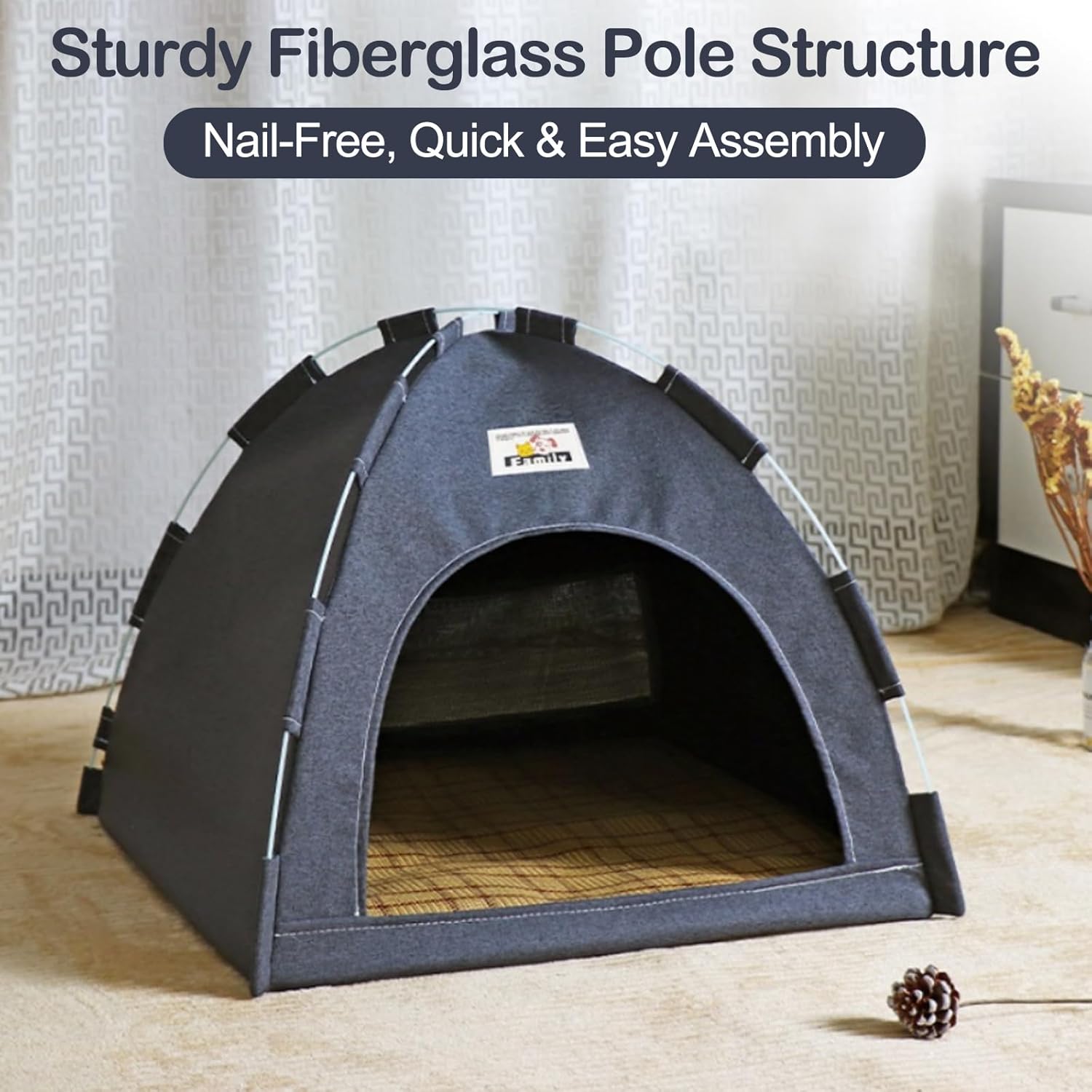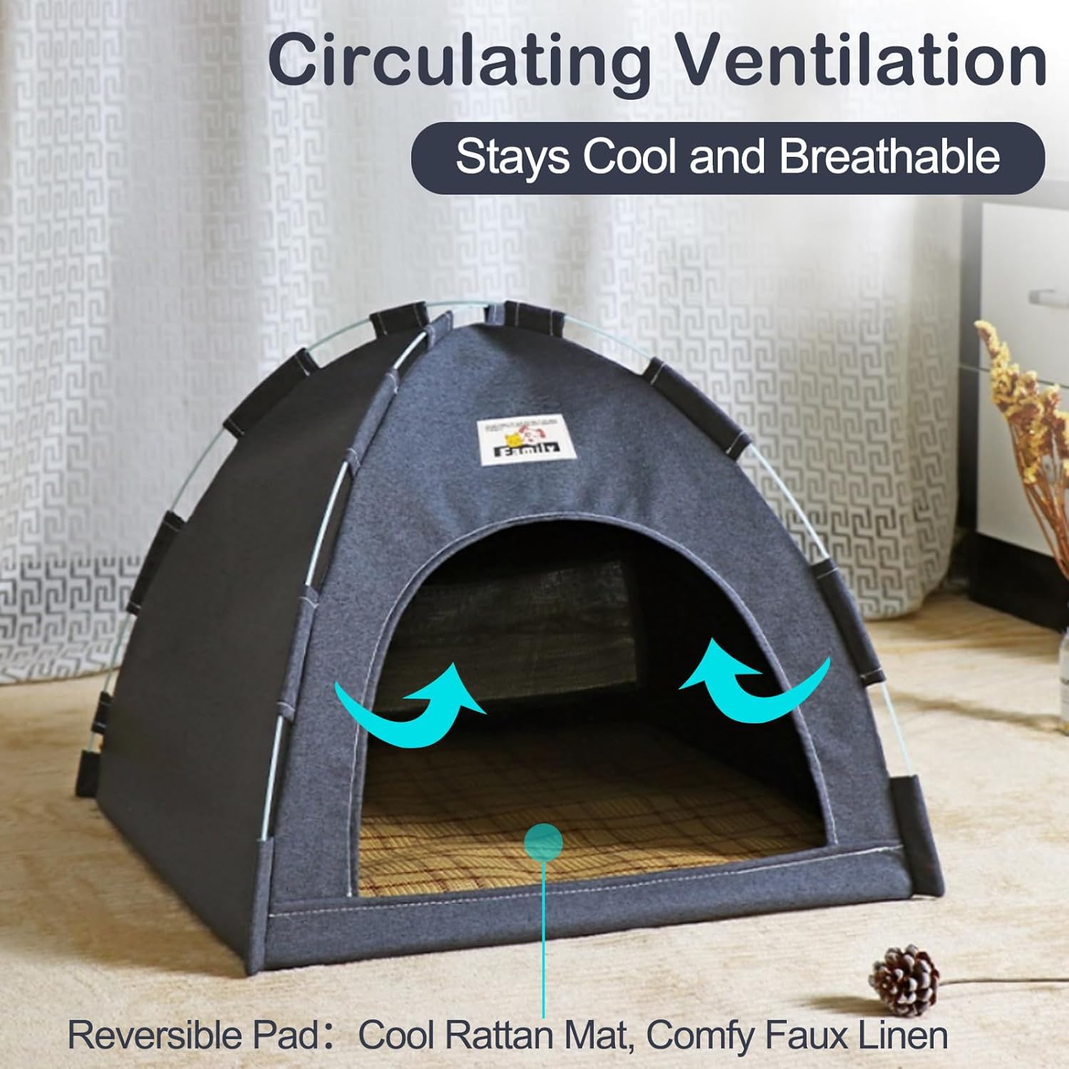 【Breathable & Comfortable】Seasonal comfort, year-round! Made from soft, breathable materials, this tent includes a special two-sided cushion: one side is a cooling mat for summer, the other is breathable linen. It creates a cool retreat on hot days and a cozy, hygienic space in other seasons. Ensures your pet stays comfortable and relaxed indoors or out!