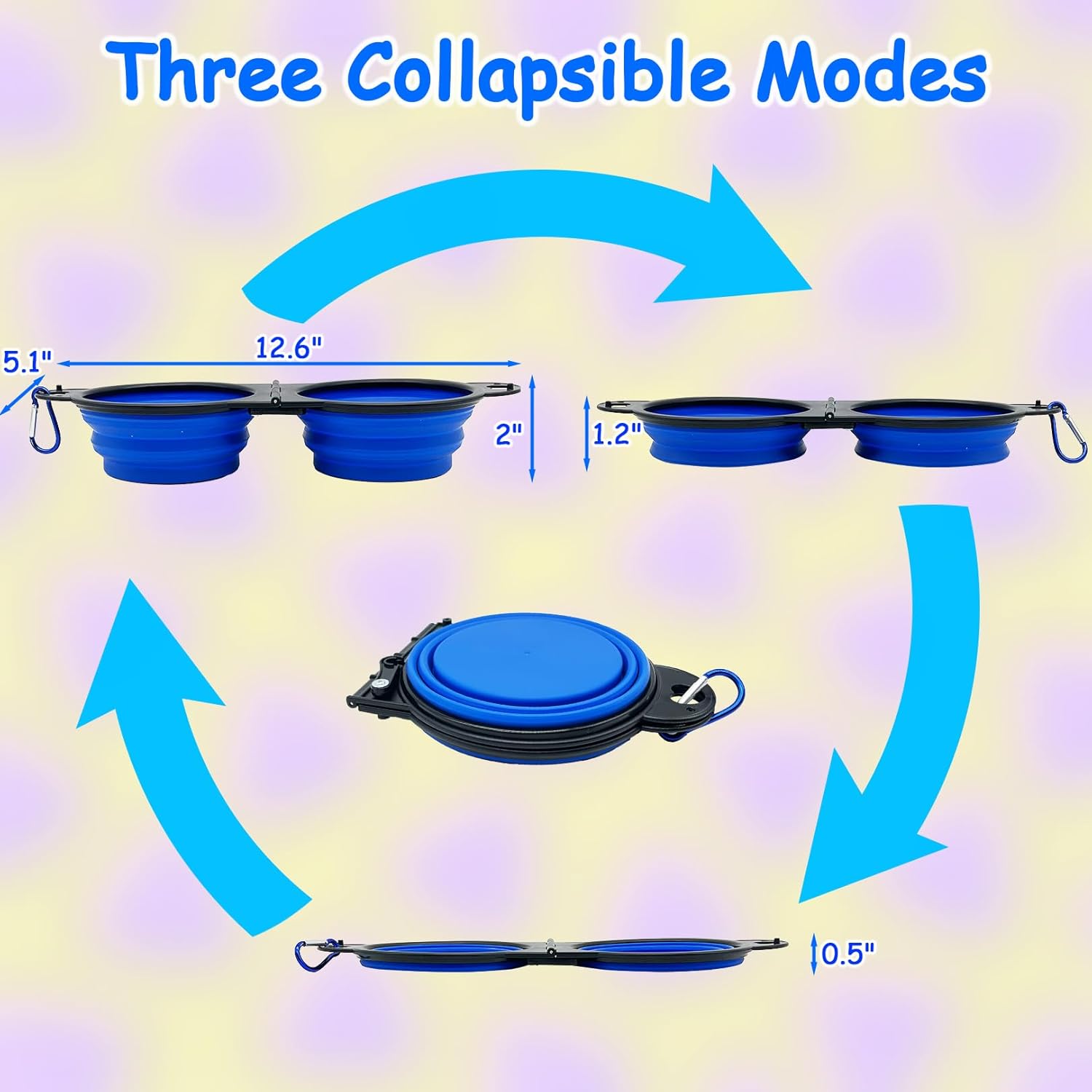 This portable dog bowl set features a 180° flip-flat design for compact storage and hygiene on the go. Made from BPA-free, food-grade silicone, it’s safe, durable, and easy to clean. The dual-bowl setup keeps food and water separate, with secure buckles for added stability. Each bowl comes with a carabiner clip for convenient attachment to bags, belts, or leashes—ideal for travel, hikes, and daily walks.
