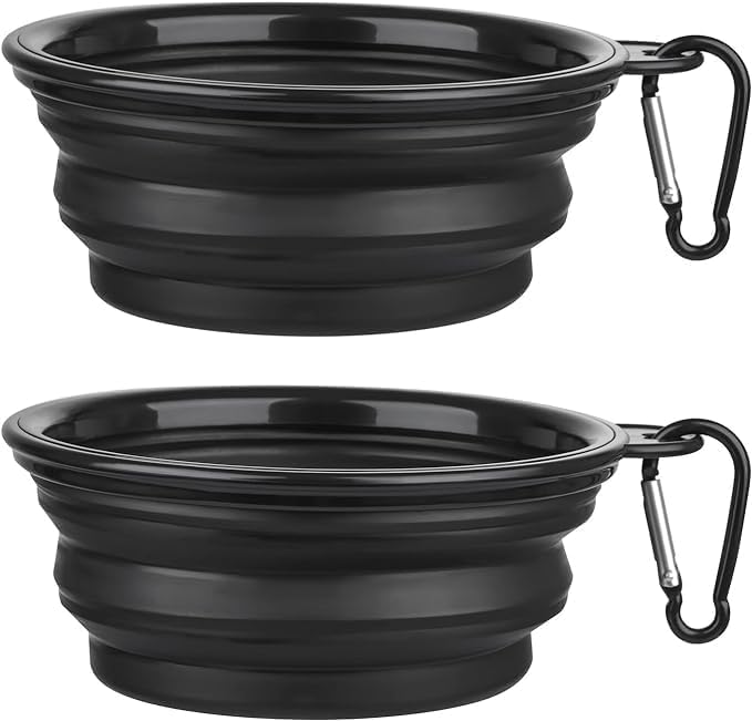 2️⃣ Perfect for Travel: Lightweight, collapsible design with 2 carabiners — clip to your leash, backpack, or belt.
