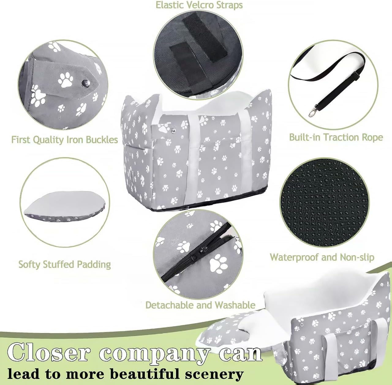 Secure & Stable Ride for Your Pet This pet car seat features elastic secure straps that tightly fasten it to your vehicle’s armrest, preventing slips and slides during travel. For added safety, it includes adjustable safety leashes to keep your pet securely contained, ensuring a stable and comfortable ride