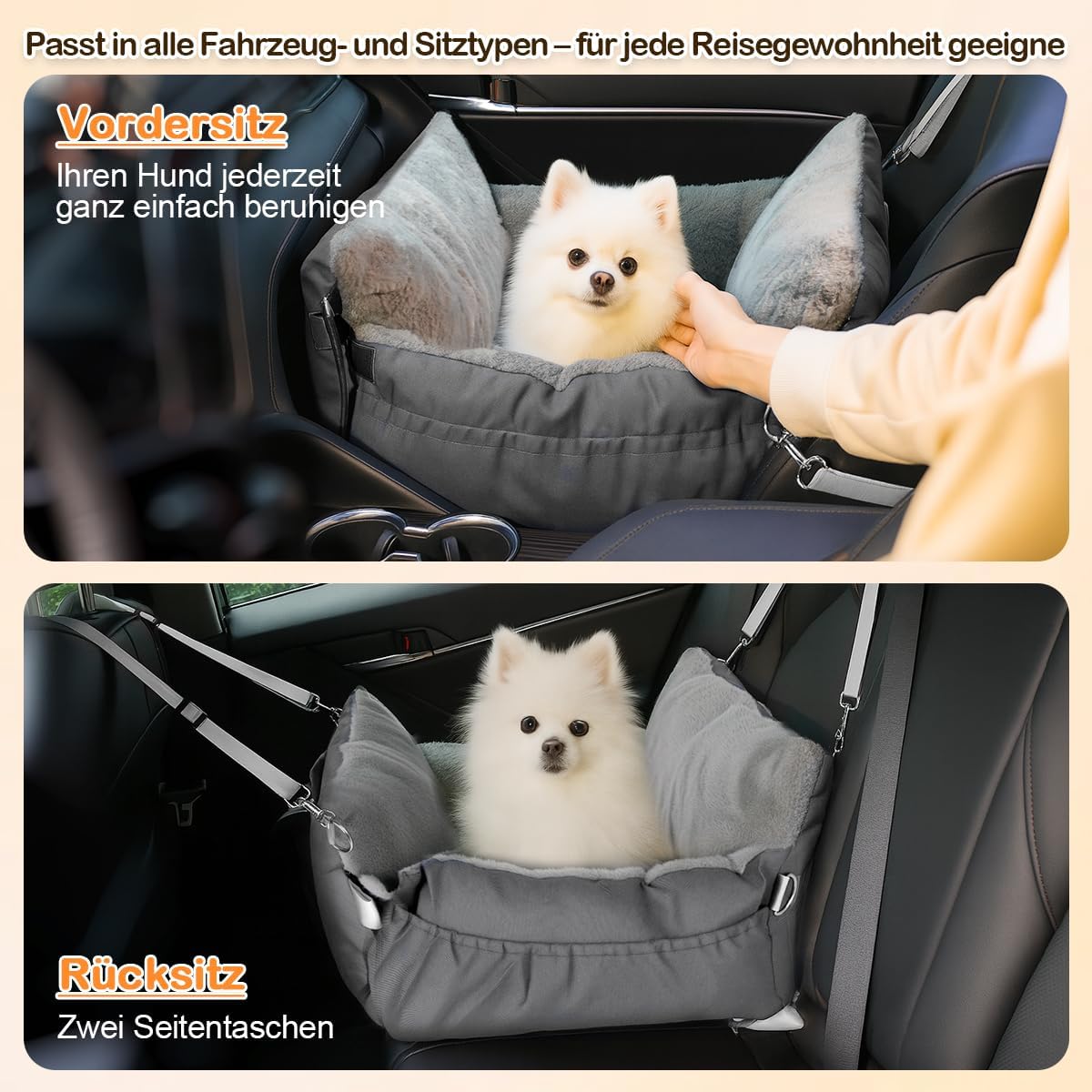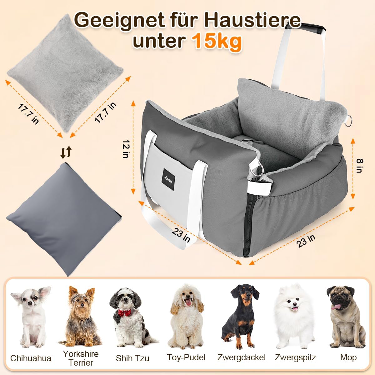 All-Season Dog Travel Bed Reversible cushion design: plush side keeps pets warm in winter, breathable Oxford side stays cool in summer. This versatile dog travel bed and portable dog car seat is perfect for small dogs and cats under 15kg, ensuring year-round comfort