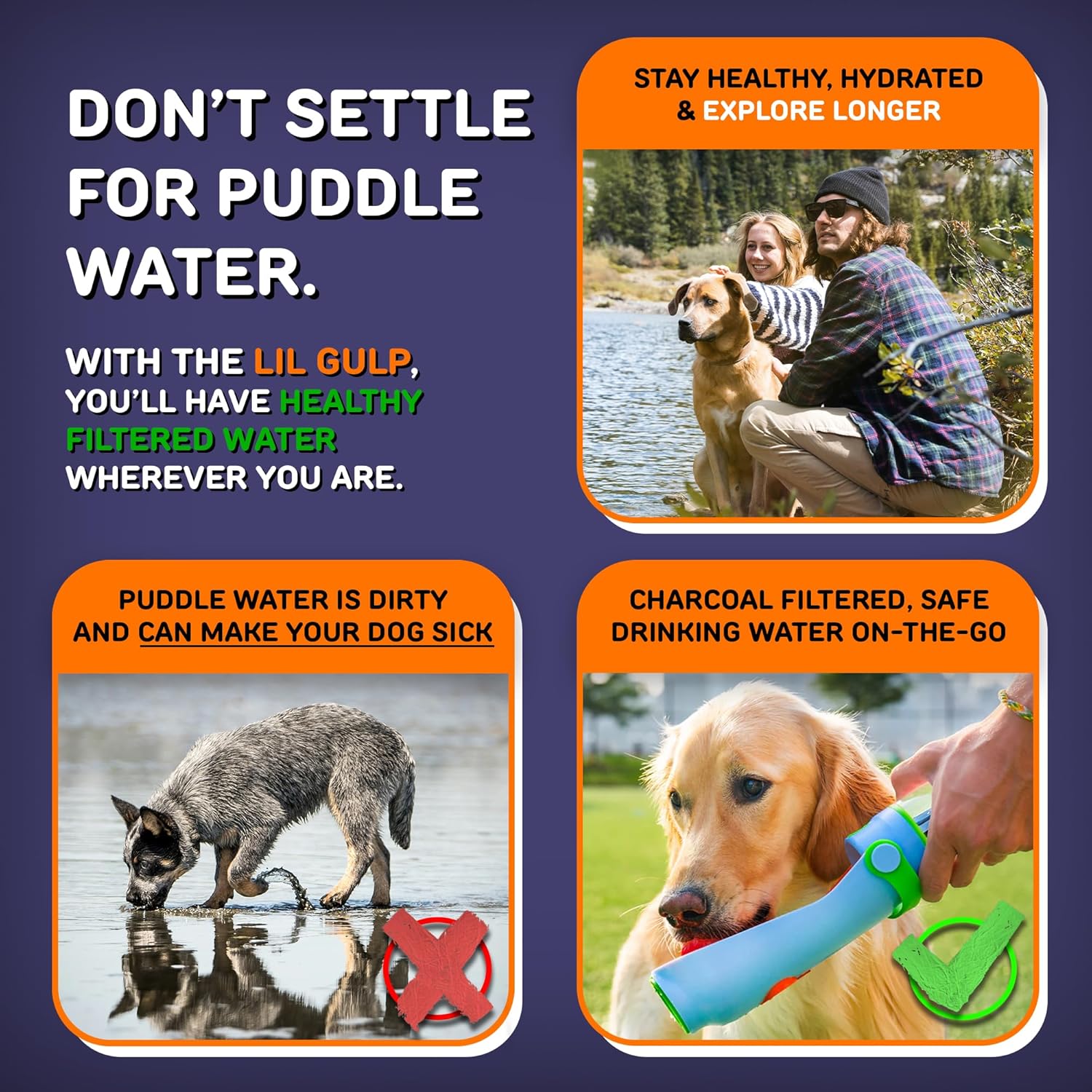 Portable Dog Water Bottle Perfect for Outdoor adventures: Ideal for on-the-go hydration, the Lil Gulp is a must-have pet water dispenser for dog walking, hiking, and trips to the beach, ensuring your pup stays hydrated no matter where you are.