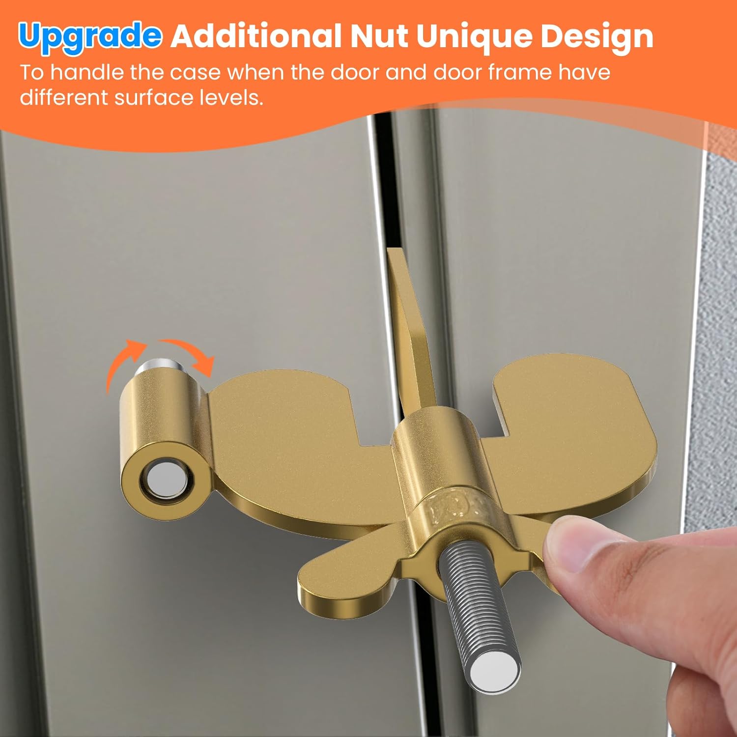 Super Easy to Use No Drill Door Lock: No need to nail or screw into anything, just insert the claws into the strike plate, close and lock the door, and then tighten the wing butterfly screw; WINCHY door lock upgrades an additional nut to fit the issue when the door and door frame have different surface levels, adjust this additional nut to cover the level difference; Then no one could get in and in case of an emergency you could remove the lock in seconds in the dark