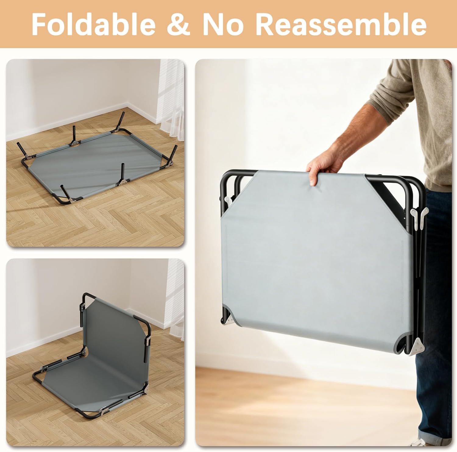【Folding Elevated Dog Bed】Our cooling large dog bed has a quick fold-and-unfold design that requires no tedious reassembly. It collapses to a compact 22 x 31 x 4 inches. Whether you’re heading camping, traveling,or simply store it at home, its portable size ensures hassle-free storage