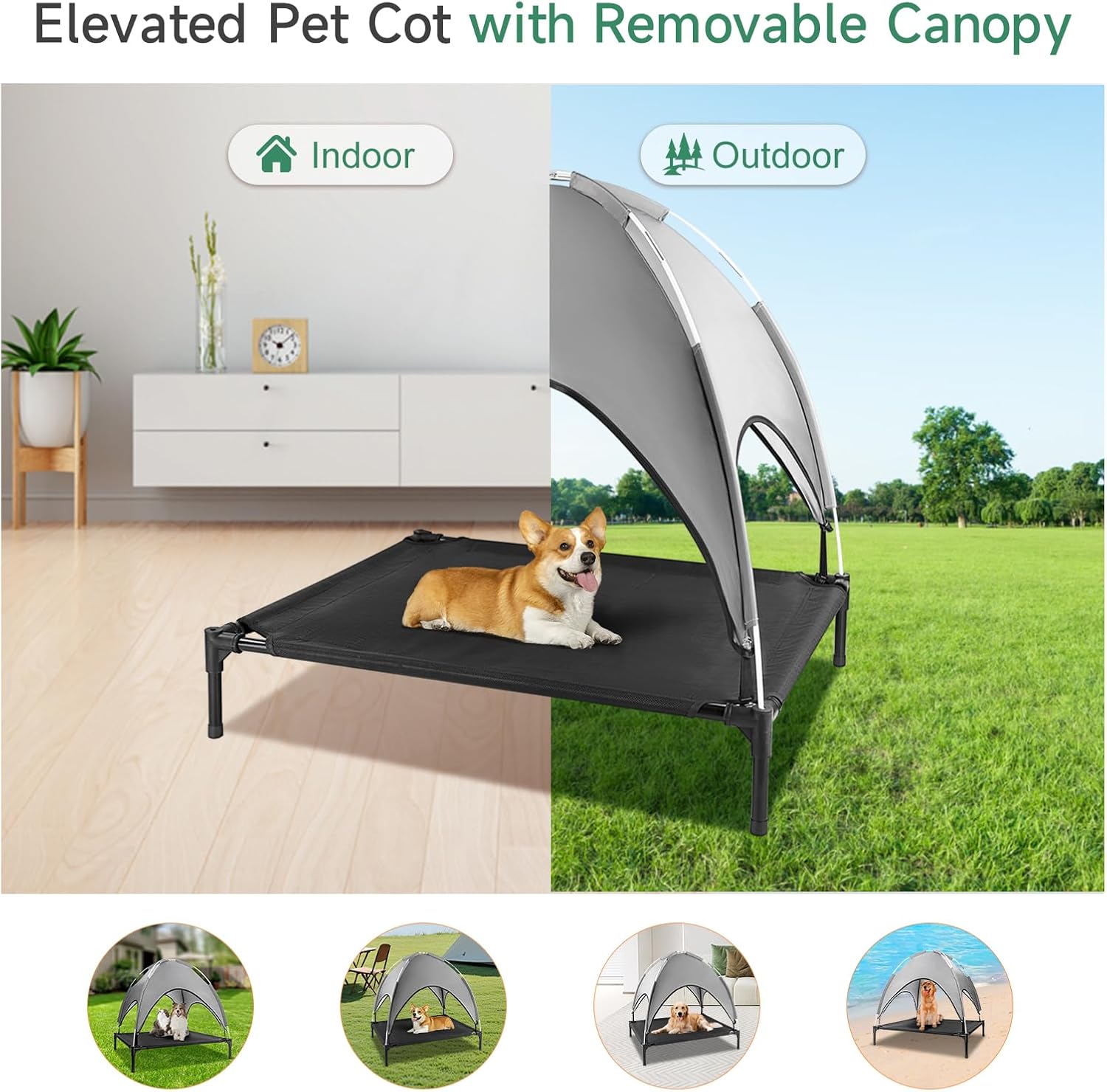 🐶【Easy to Clean and Maintenance】- Textilene material has exccelnt anti-stain properties and waterproof performance, smooth surface won’t absorb dust and stains, just wipe it gently with a damp cloth to clean.Besides, both dog bed and canopy are completely detachable to easily clean every part, saving time and effort.