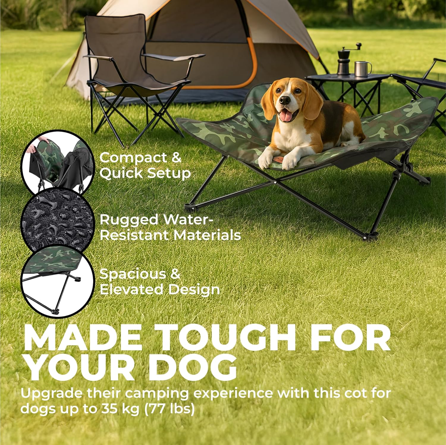Portable Elevated Dog Cot – Collapsible Camp Bed in Camo Green