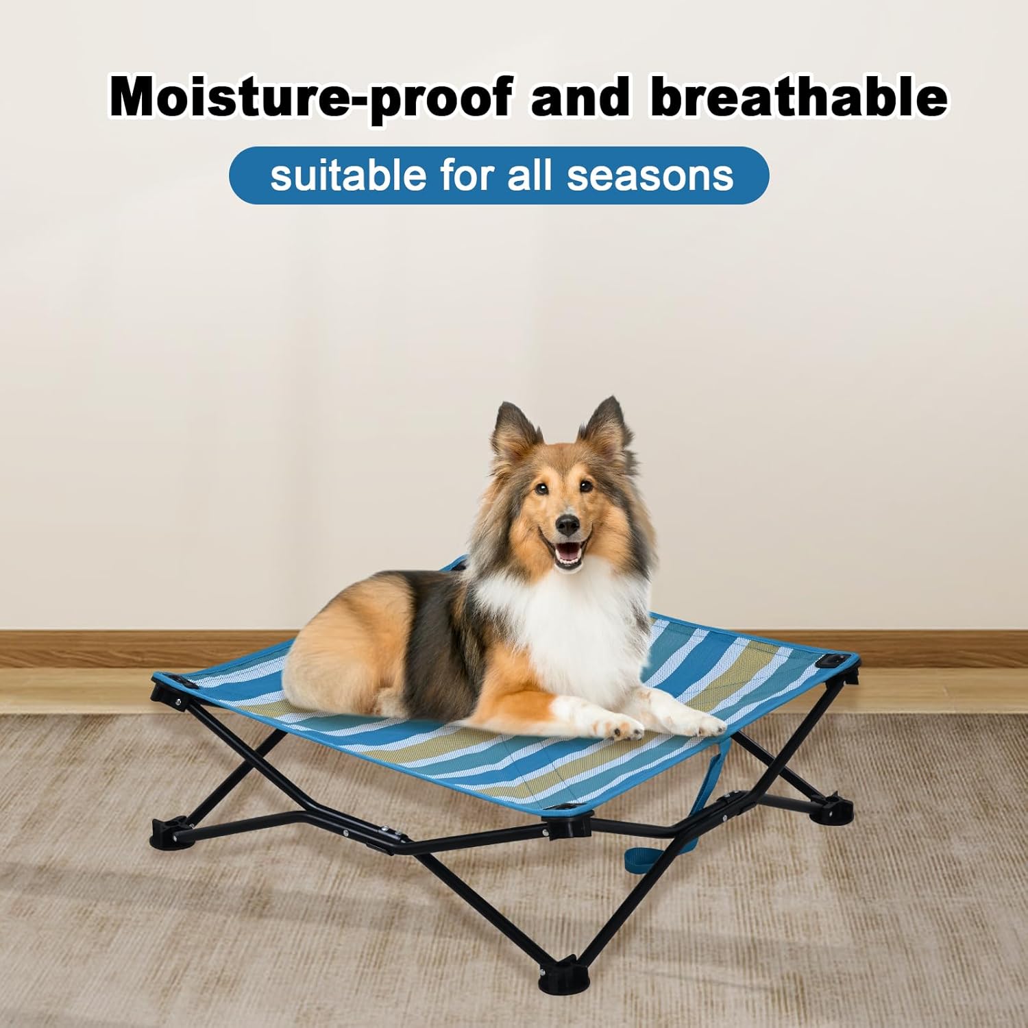 【Sturdy and Stable】 Our dog cot bed is made of heavy-duty, rust-proof steel tubes and non-slip feet which can support energetic dogs without wobbling.