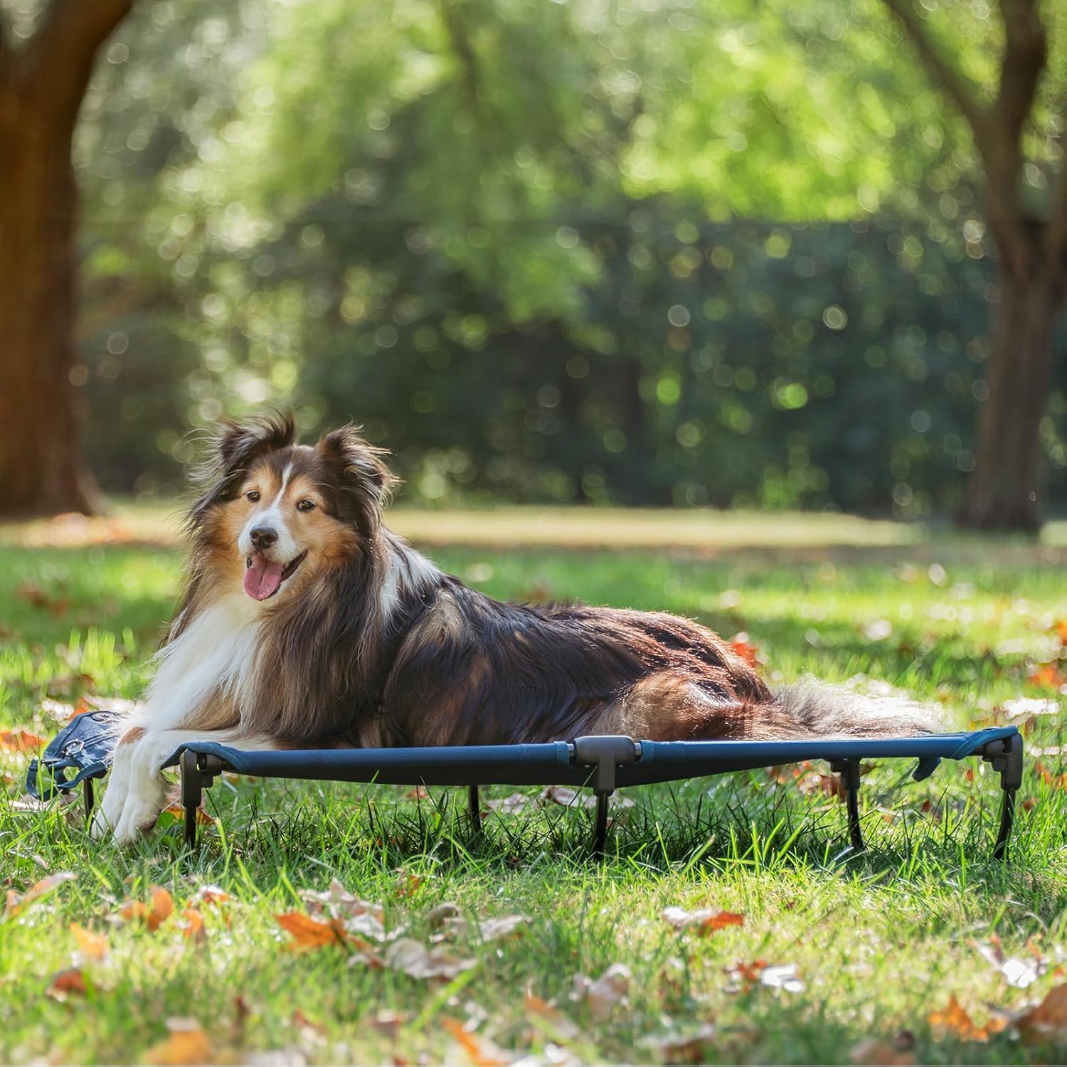 🌲 Daisy Cot, Medium Foldable Elevated Dog Bed, Portable Raised Outdoor Folding Dog Cot, Cooling, Chew Proof, Waterproof, Heavy Duty Up to 160 Lbs for Camping/Home, Dark Blue, 32″x 19″x6″ — Outdoor Dog Gear Review & Current Price