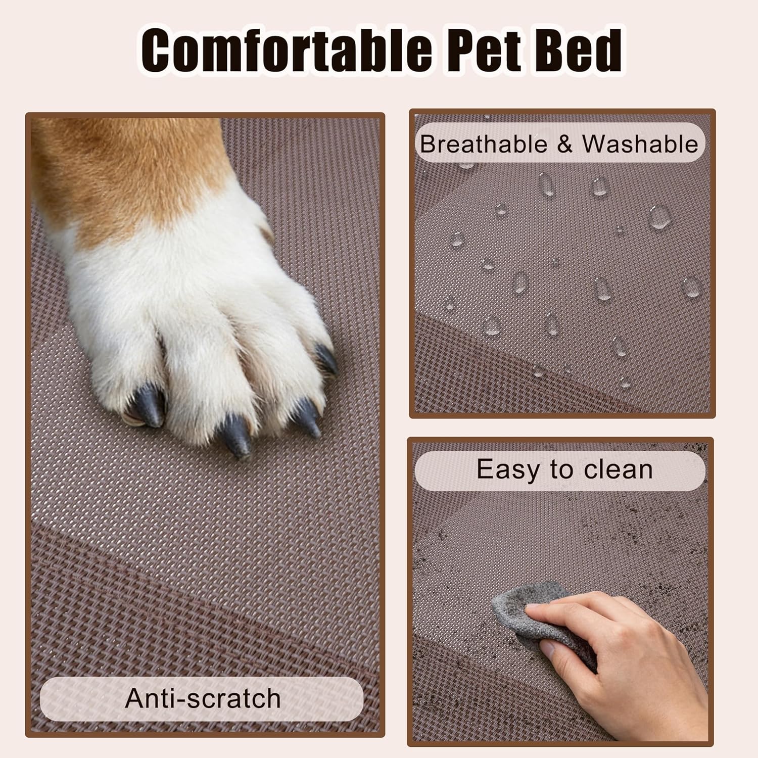 𝘾𝙤𝙤𝙡 & 𝘾𝙤𝙢𝙛𝙤𝙧𝙩𝙖𝙗𝙡𝙚: Made with durable, high density Teslin fabric, this raised dog bed is anti-scratch, provide a cool and comfortable rest for your pets, and 7” height keeps them off from the wet/cold ground while adventuring with you