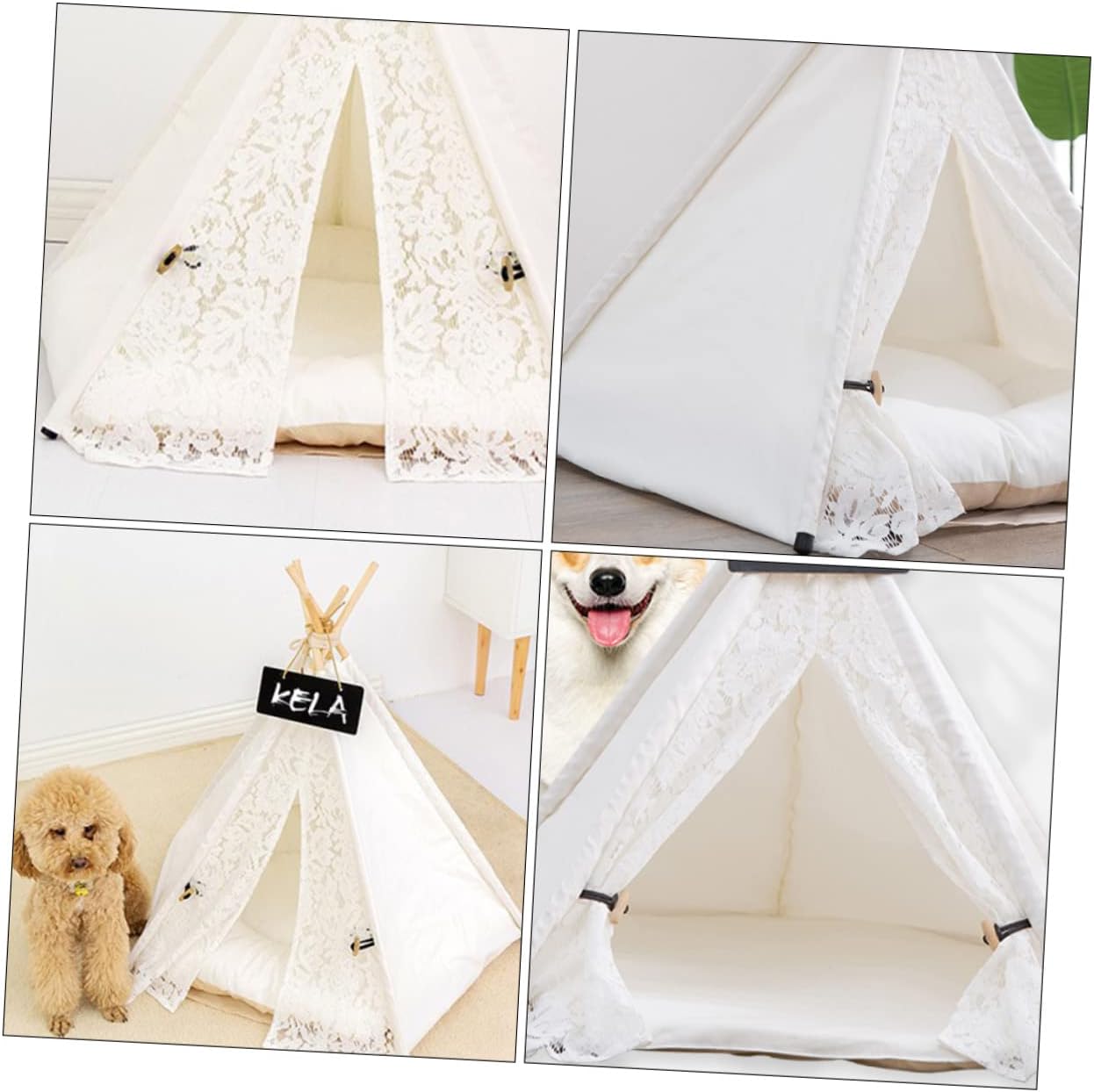 -Material: Cotton canvas and pine Pet Triangle Tent