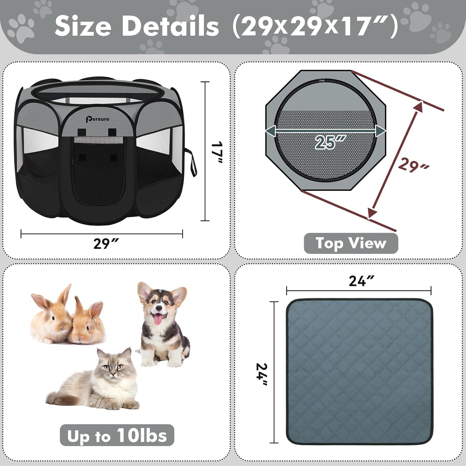 Instant Setup & Ultimate Portability: No Assembly Required. Get ready in seconds! This pop-up pet playpen requires no assembly—simply unfold it to use and fold it down for storage. Its lightweight and foldable design includes a handy carrying bag, making it perfect for travel, camping, vacations, or everyday use both indoors and outdoors. The ultimate portable pet enclosure for life on the go.