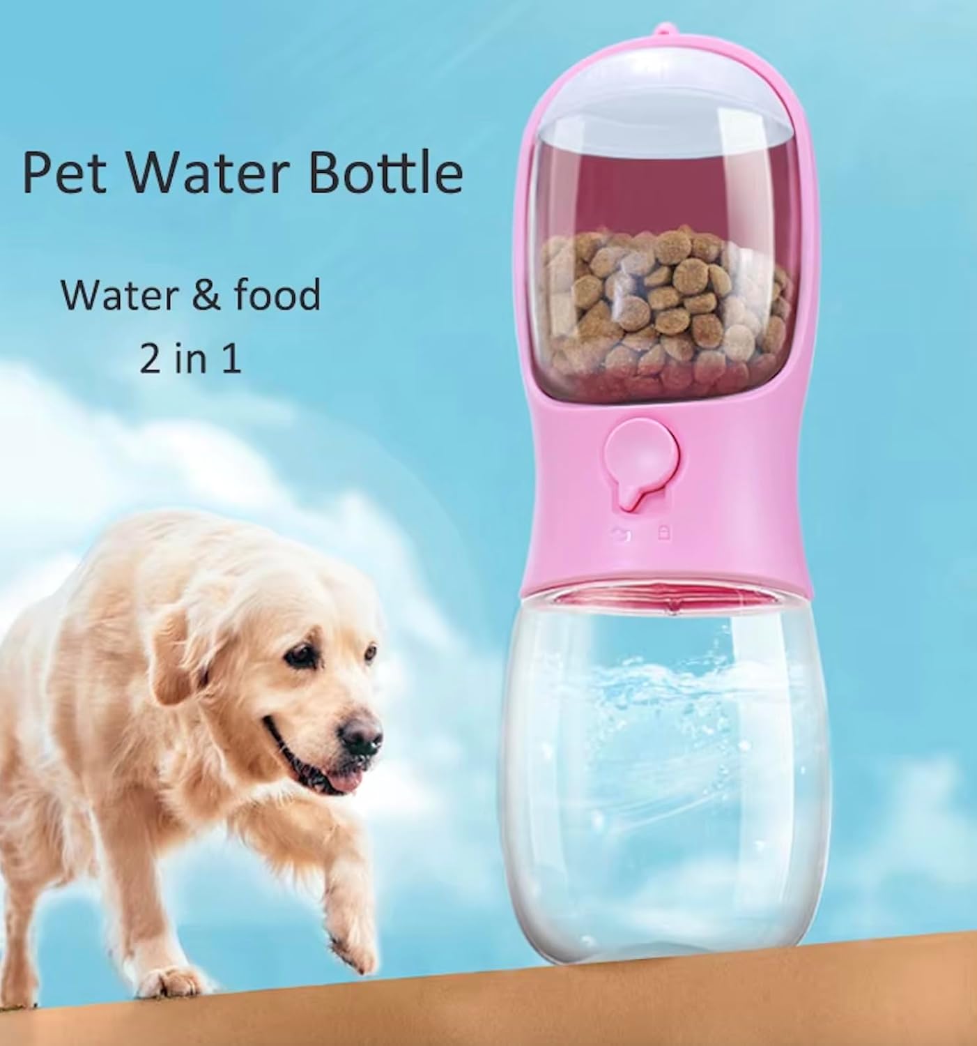 Portable Leak-Proof Dog Water Bottle for Walking – 300ml Pink