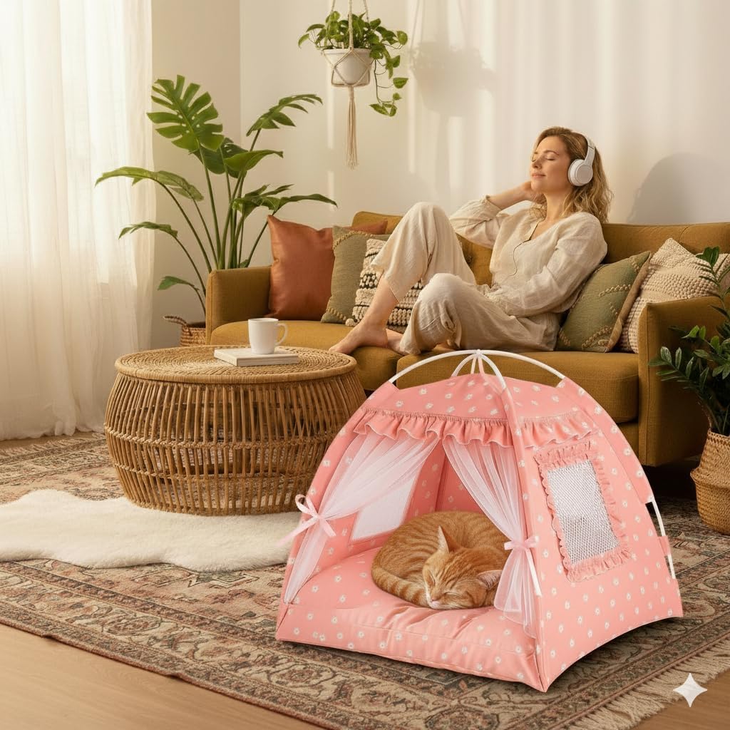 DURABLE MATERIAL: The cat tent bed is made of high quality material, ensuring that your pet tent is not only beautiful but also durable, providing your pet with long-lasting companionship and shelter.