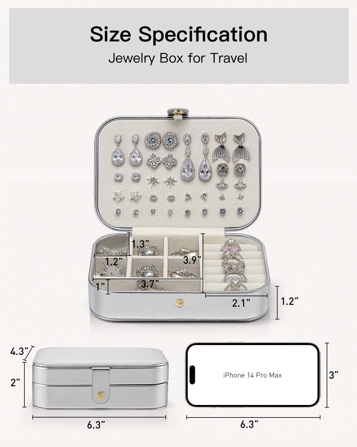 Portable PU Leather Travel Jewelry Case for Women & Girls – Silver