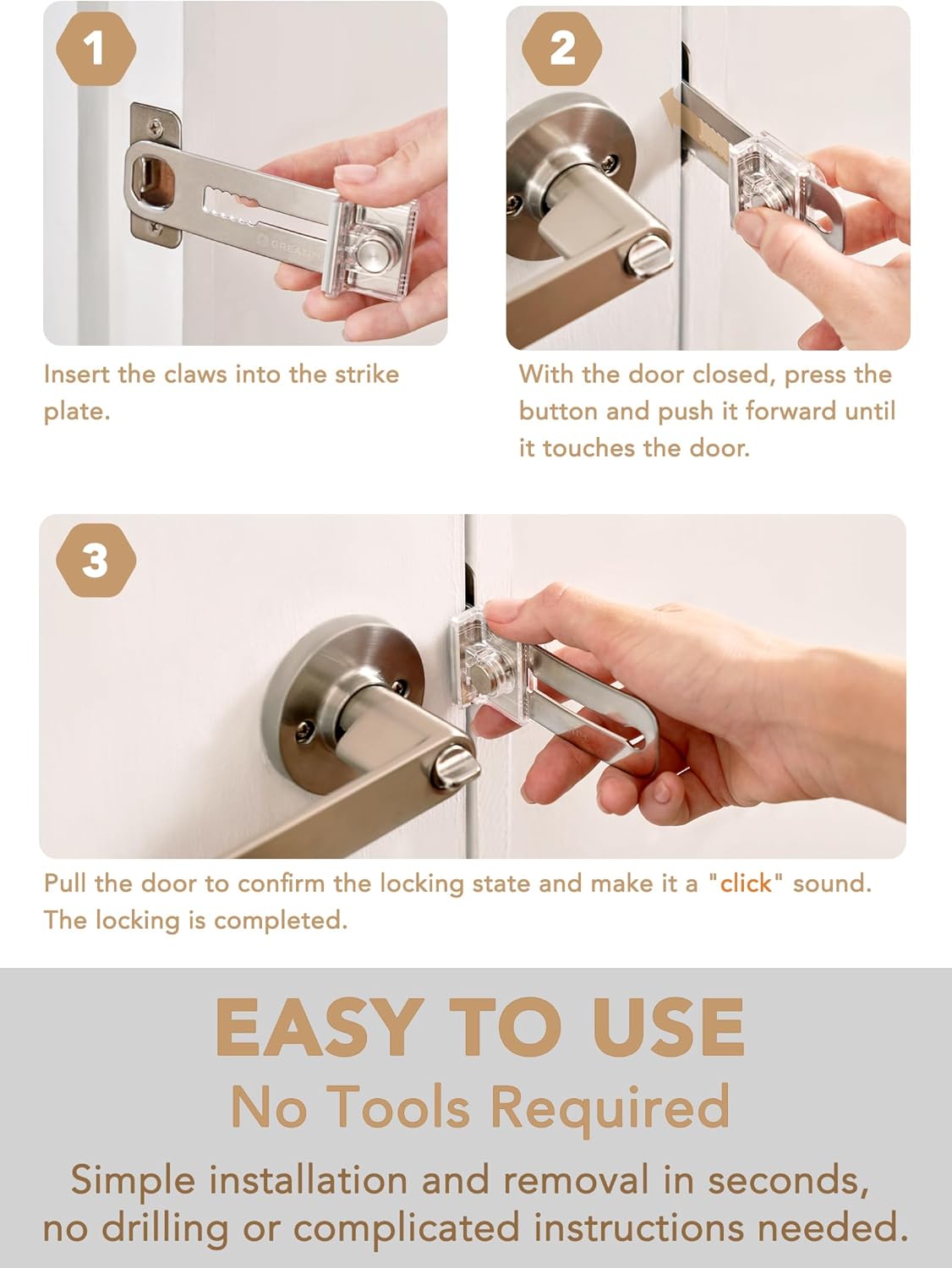 Easy, One-Handed Setup: Slip it into the latch for fast, one-handed installation. Add a layer of protection wherever you go, instantly—don’t let safety wait. We designed the door lock so that its setup is easy and accessible for everyone.
