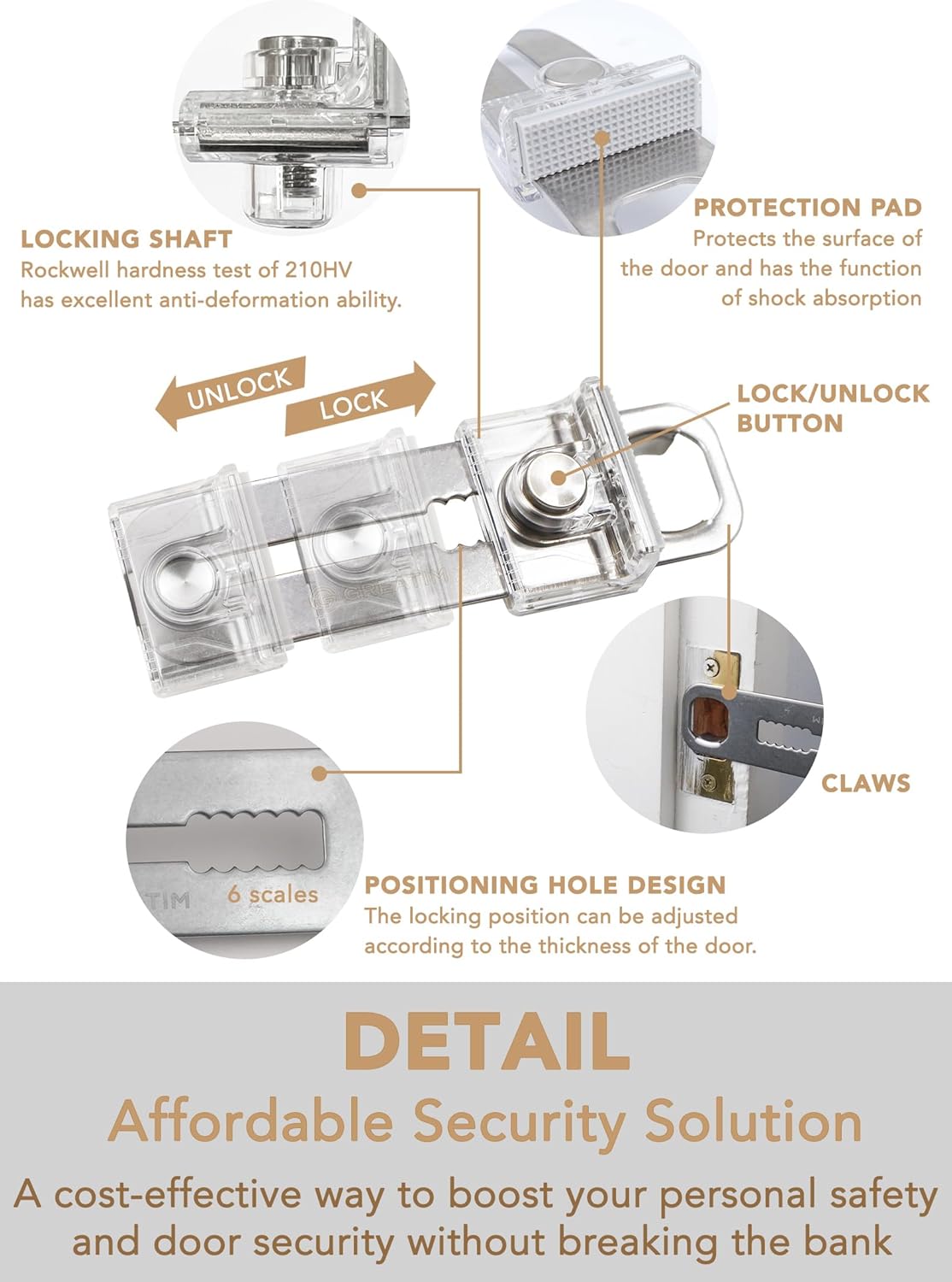 Durable, and Anti-Friction Design: Our travel hotel door lock ensures secure locking without harming surfaces, keeping both you and the property safe. It is durable, due to its thick material and anti-friction surface design.