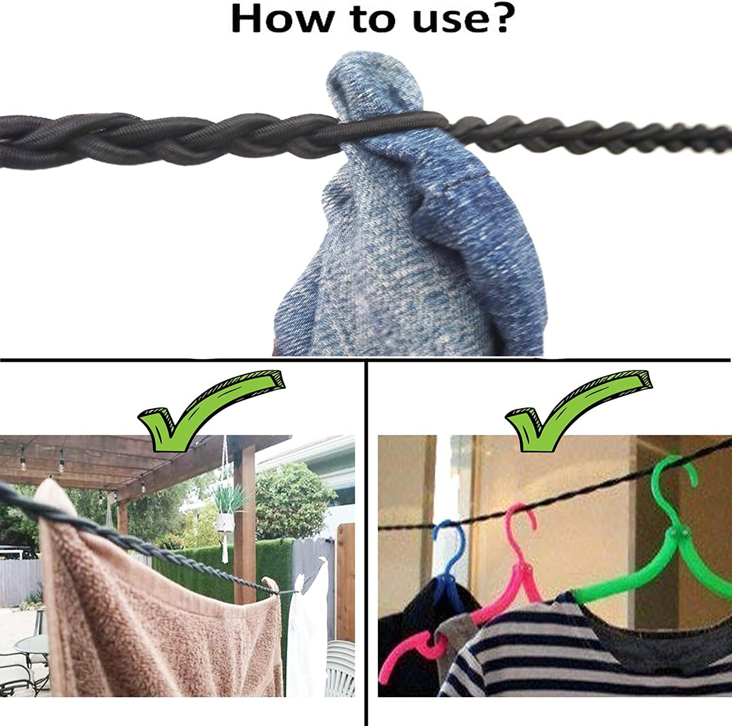 Safety & Lightweight – The bungeee cord will grab the clothes strongly without pins. No More marks on your laundry clothes.