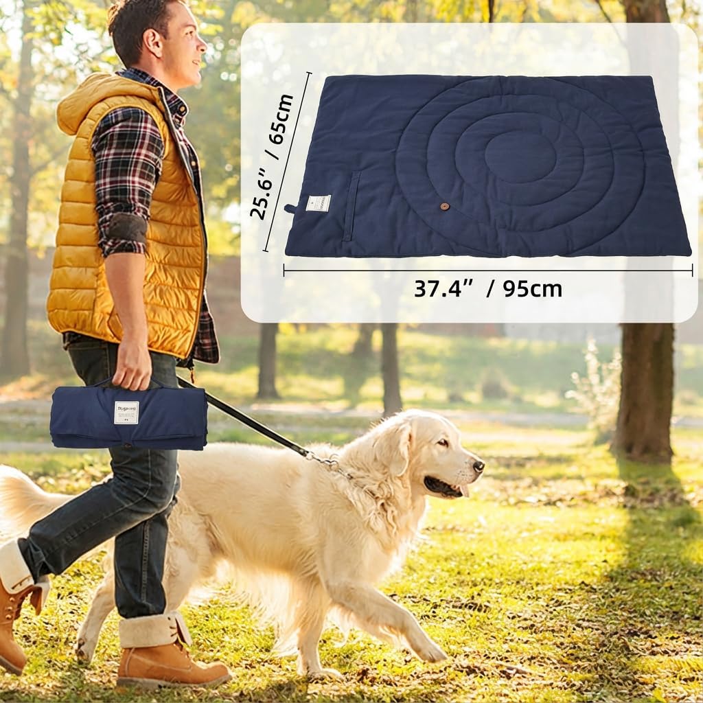ALL-WEATHER WATERPROOF & DURABLE: Crafted from high-quality Oxford fabric, our outdoor dog mat is 100% waterproof, protecting your floors, furniture, and car seats from spills, mud, and pet accidents. The scratch-resistant, dual-sided material is built to last, ensuring a clean and dry resting spot for your furry friend in any environment.