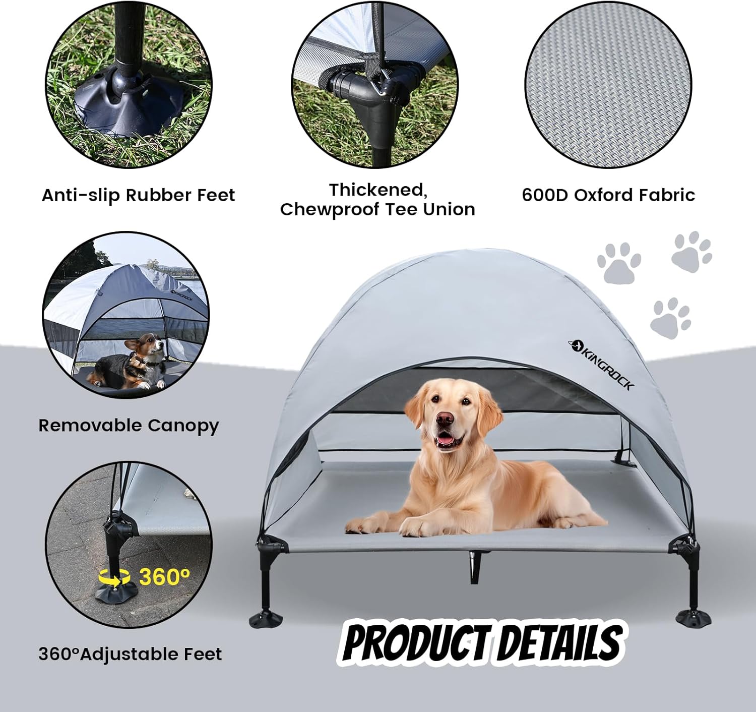 🌲 KINGROCK Elevated Dog Bed with Removable Canopy Portable Outdoor Pet Cot Waterproof 600D Oxford Fabric Anti Slip Feet for Large Dogs Camping Beach Indoor and Outdoor Use — Outdoor Dog Gear Review & Current Price